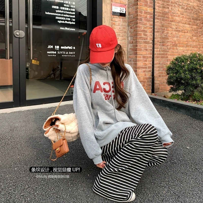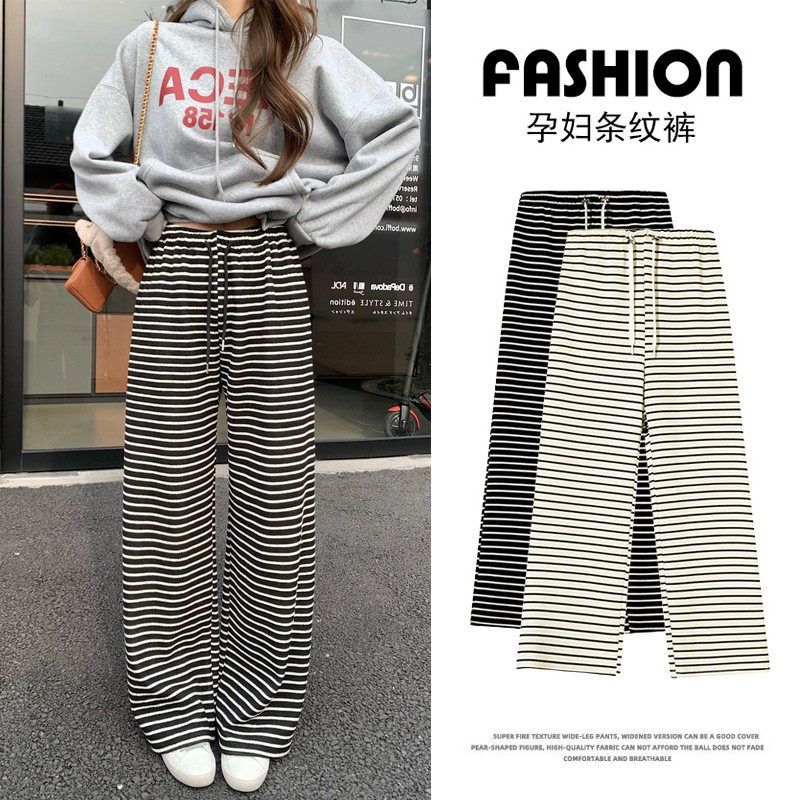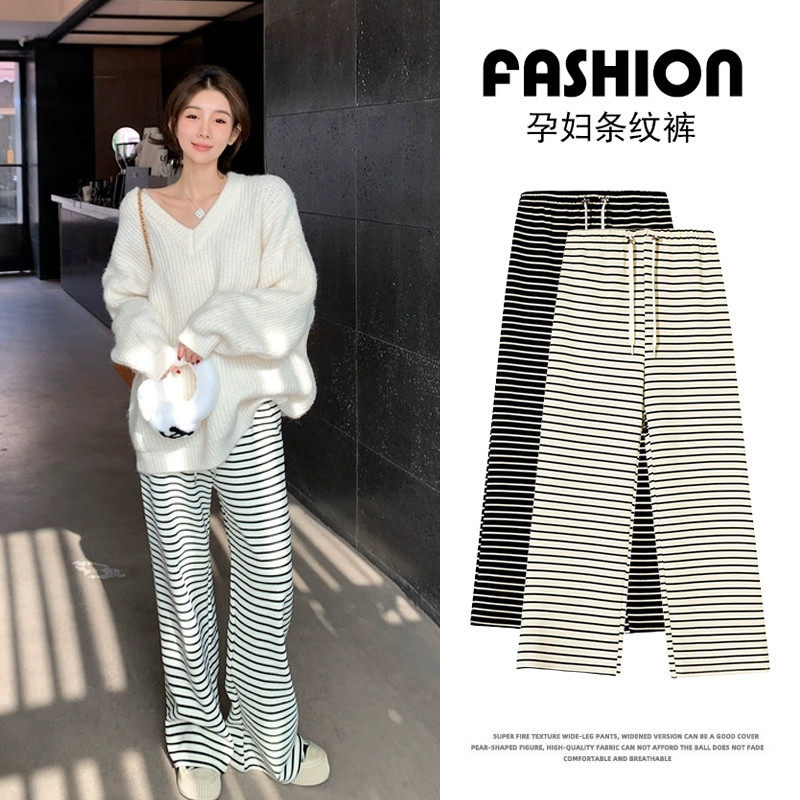生完也能穿孕妇阔腿裤女春秋外穿2024新款宽松条纹长