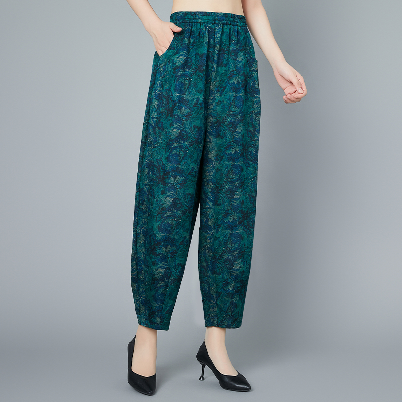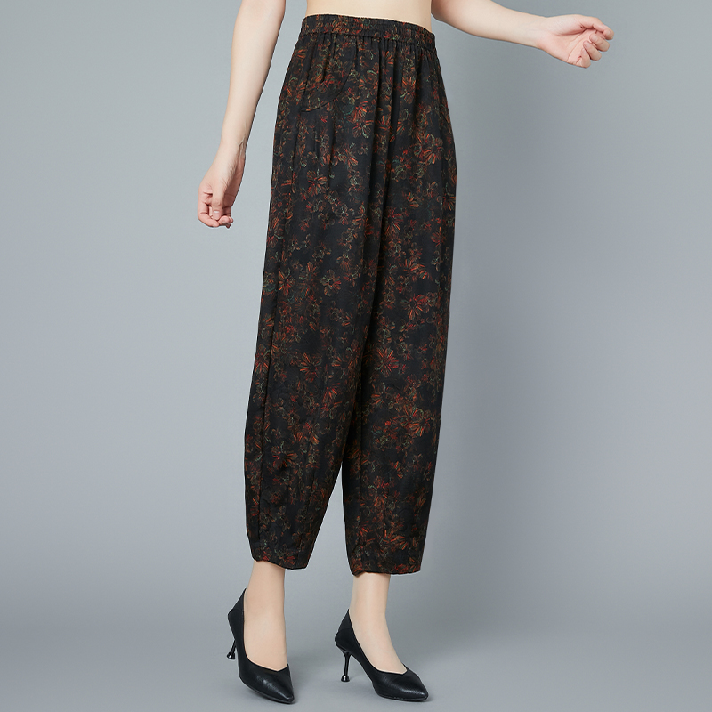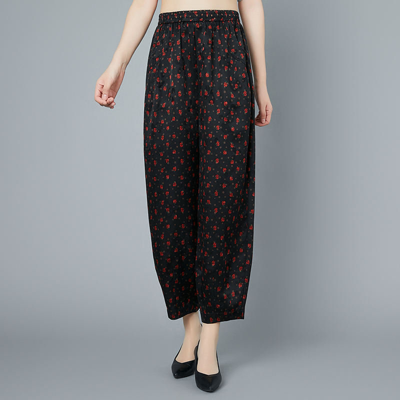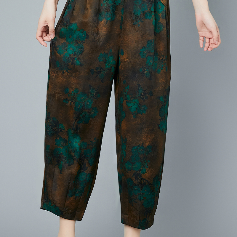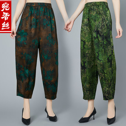 真丝花色香云纱九分女裤桑蚕丝绸大码哈伦萝卜裤妈妈夏装专柜正品
