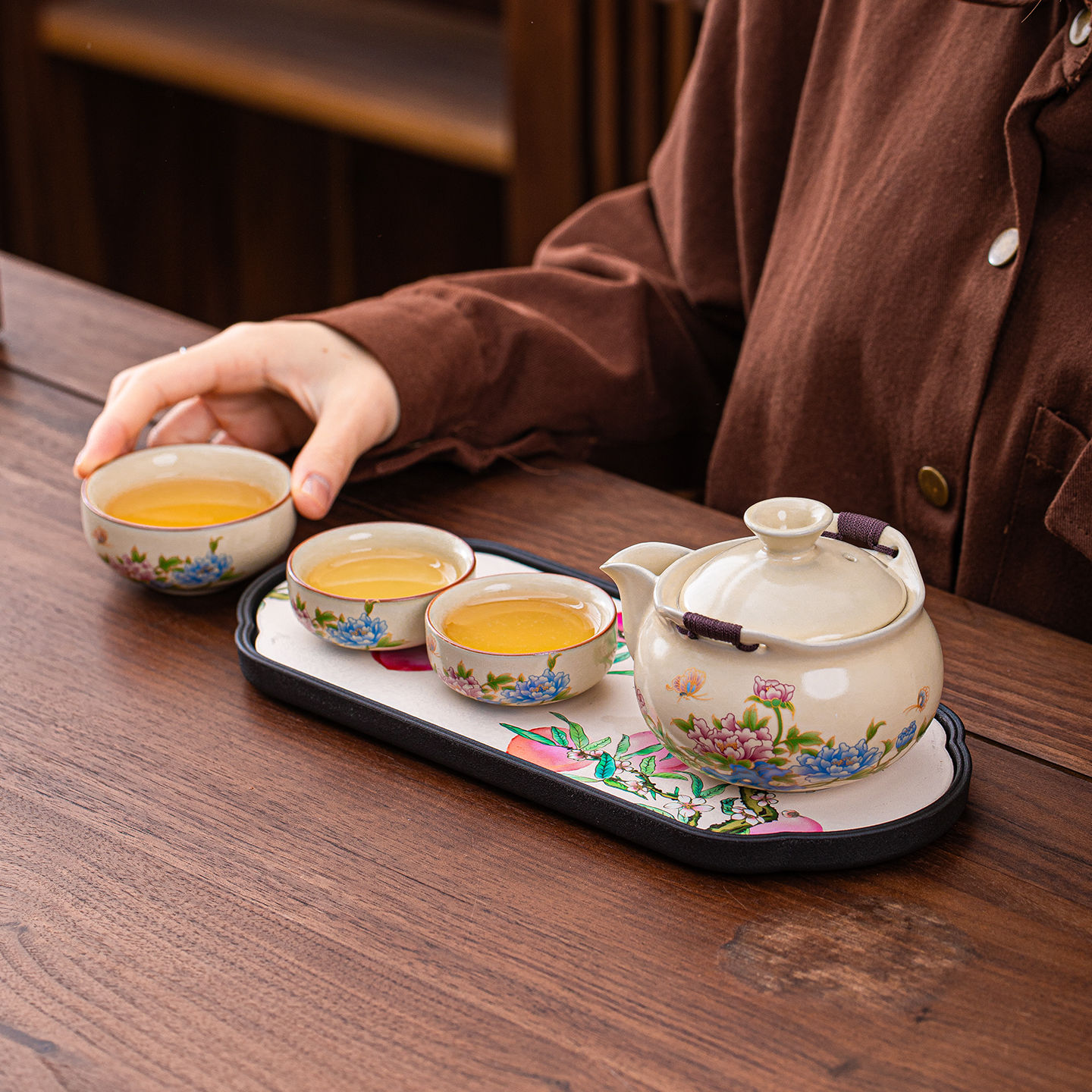 汝窑手抓壶陶瓷功夫茶具便携式旅行泡茶壶露营防烫家用茶具泡茶器
