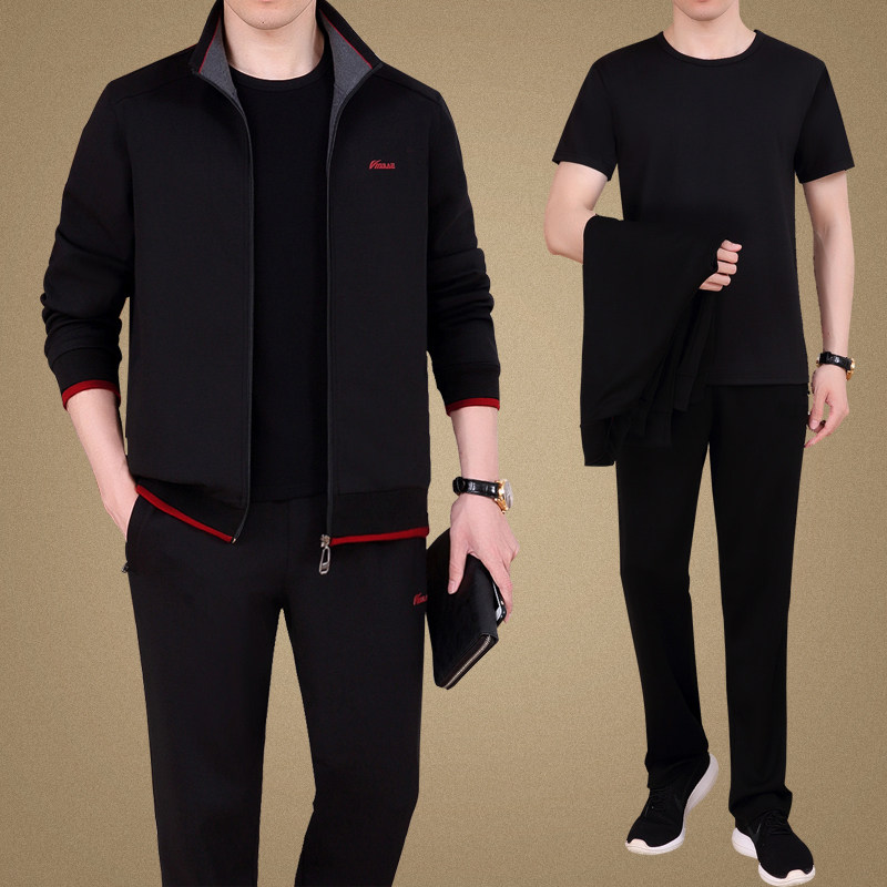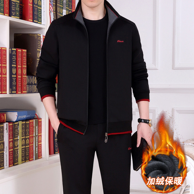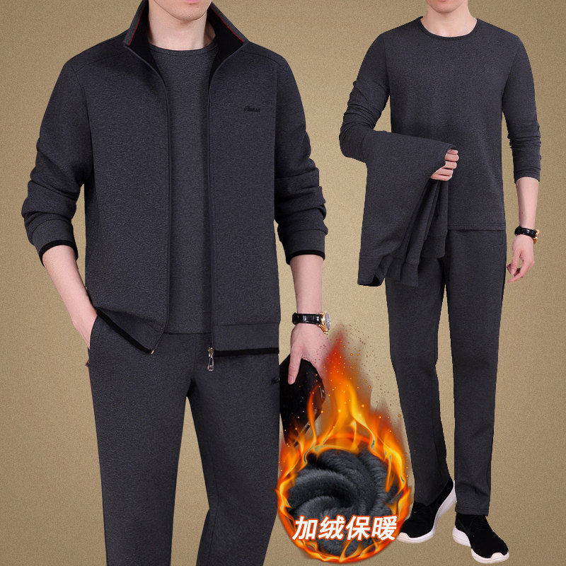 中老年爸爸冬季加绒加厚运动服外套男士秋冬宽松父亲休闲三件套装