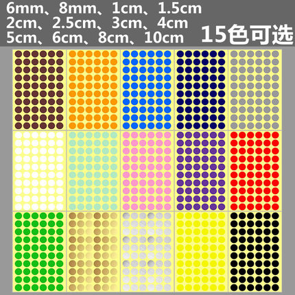 15色选带粘性彩色圆形贴纸可写字圆点贴纸中号不干胶色标记贴标签色豆红黄蓝绿橙粉紫黑白金银色圆形圆圈贴纸