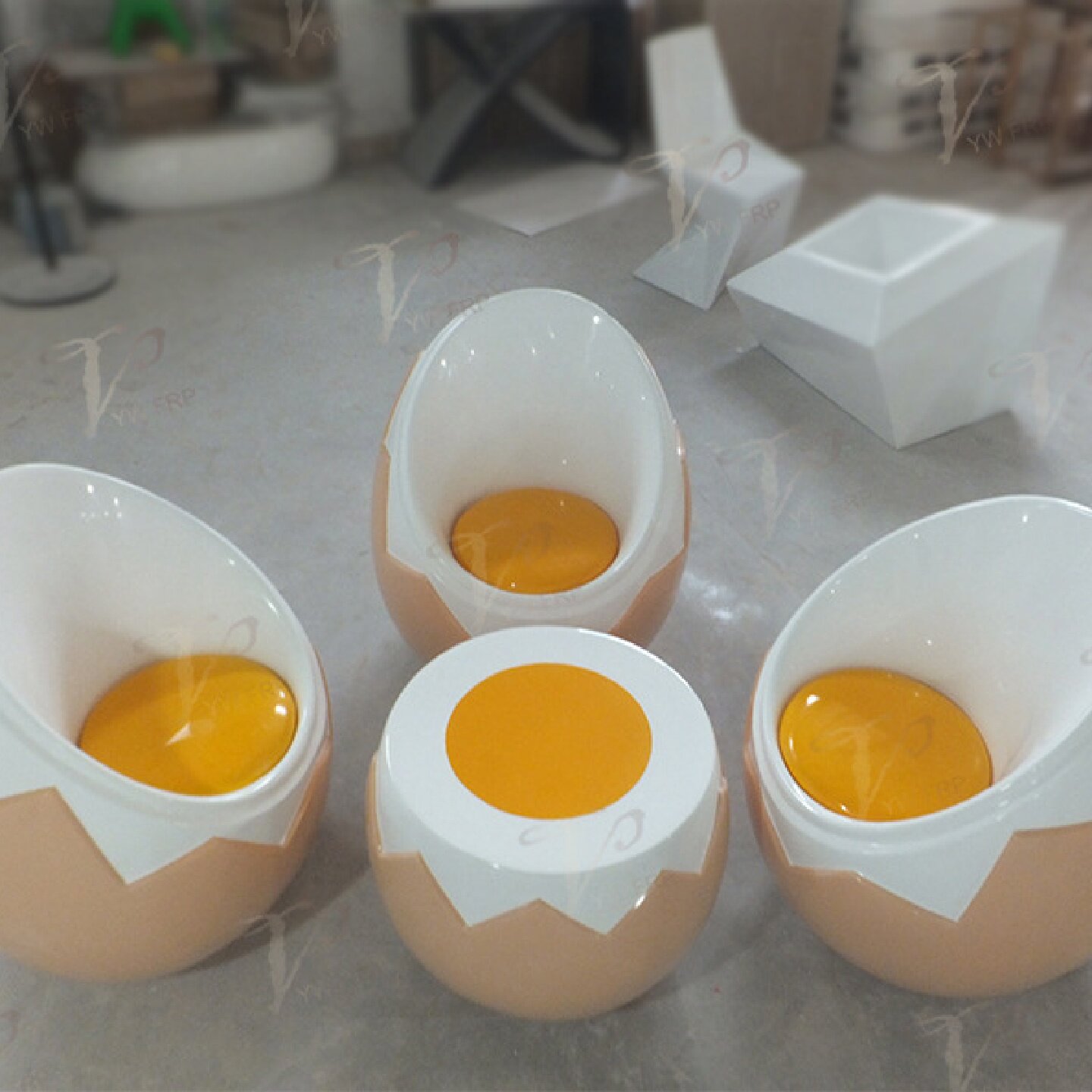北欧现代玻璃钢休闲家具餐厅美食店鸡蛋桌子椅子成套家具蛋壳茶几