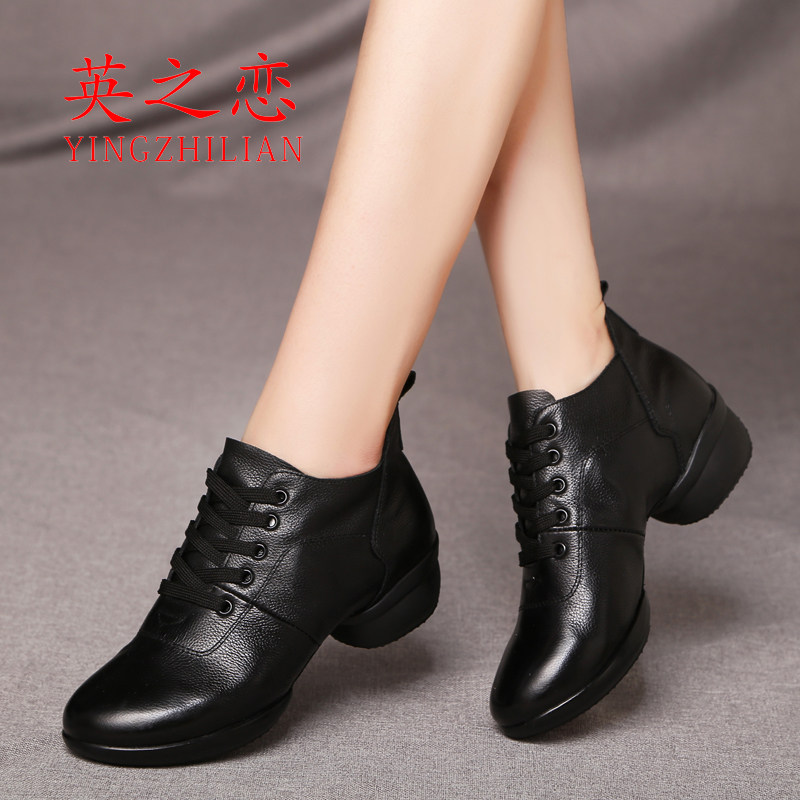 英之恋2025春秋新款舞蹈鞋女式广场舞女鞋软底真皮水兵现代跳舞鞋