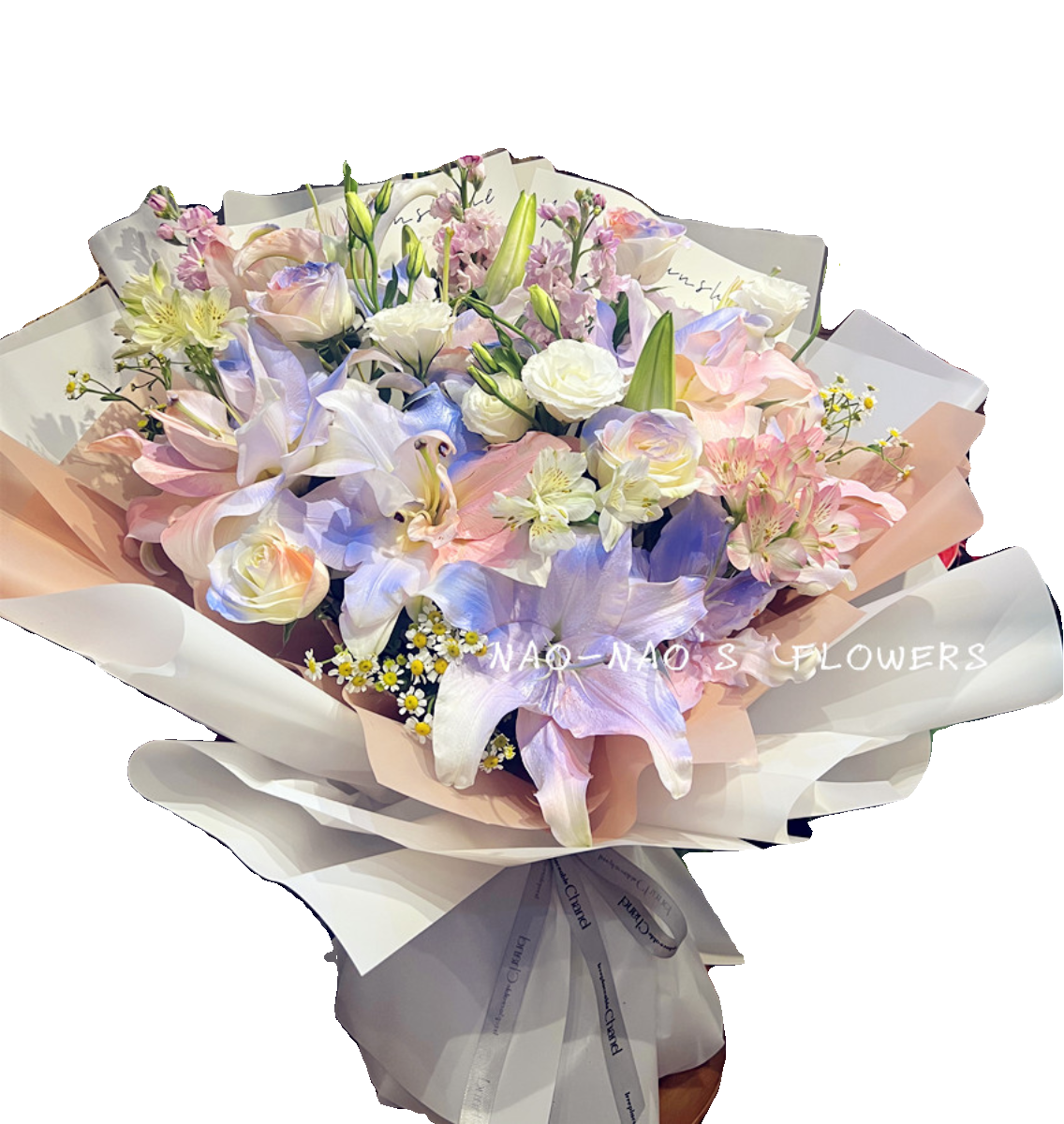 女朋友闺蜜生日百合玫瑰花束海洋系奶油系丹东实体鲜花店同城速递