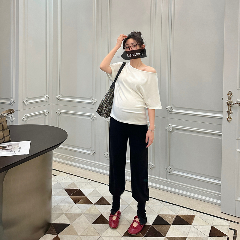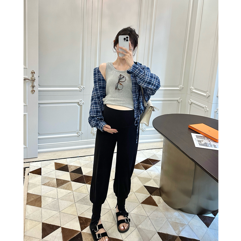 LeoMami孕妇装夏款设计感开叉束脚裤高腰薄款时尚减龄休闲哈伦裤