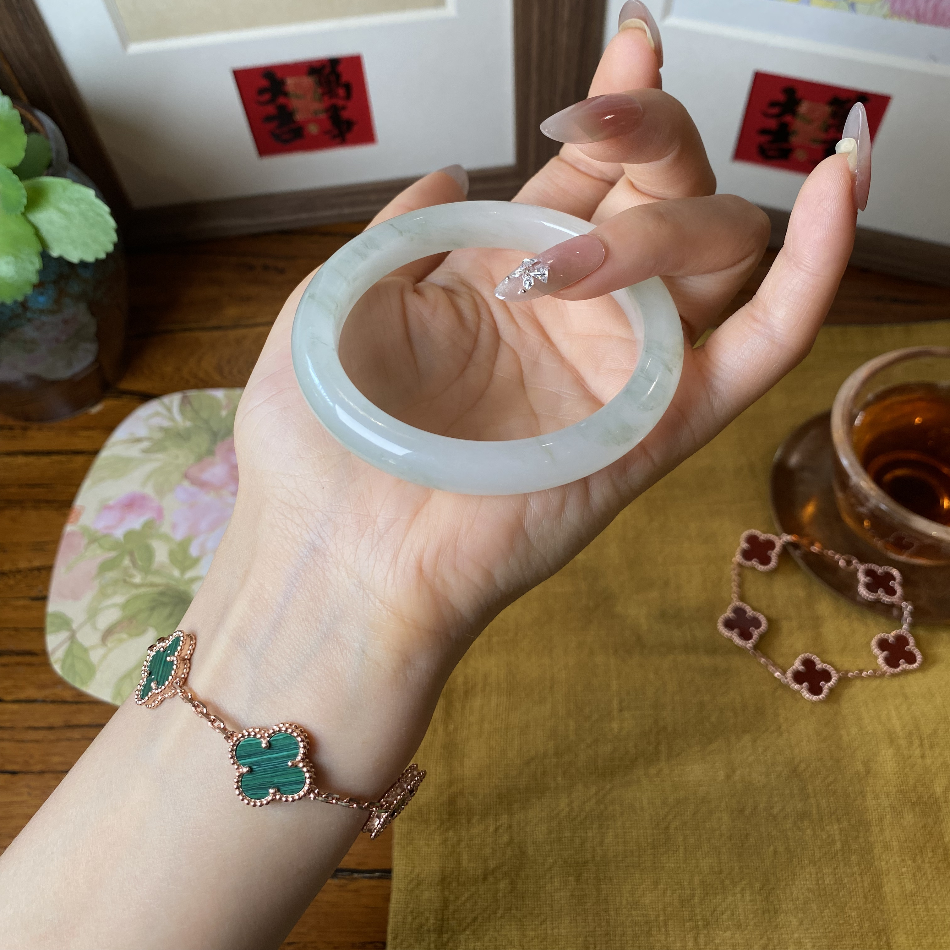 纯天然新疆天山翠手镯女款雪翠高冰种晕染飘花送老婆妈妈生日礼物
