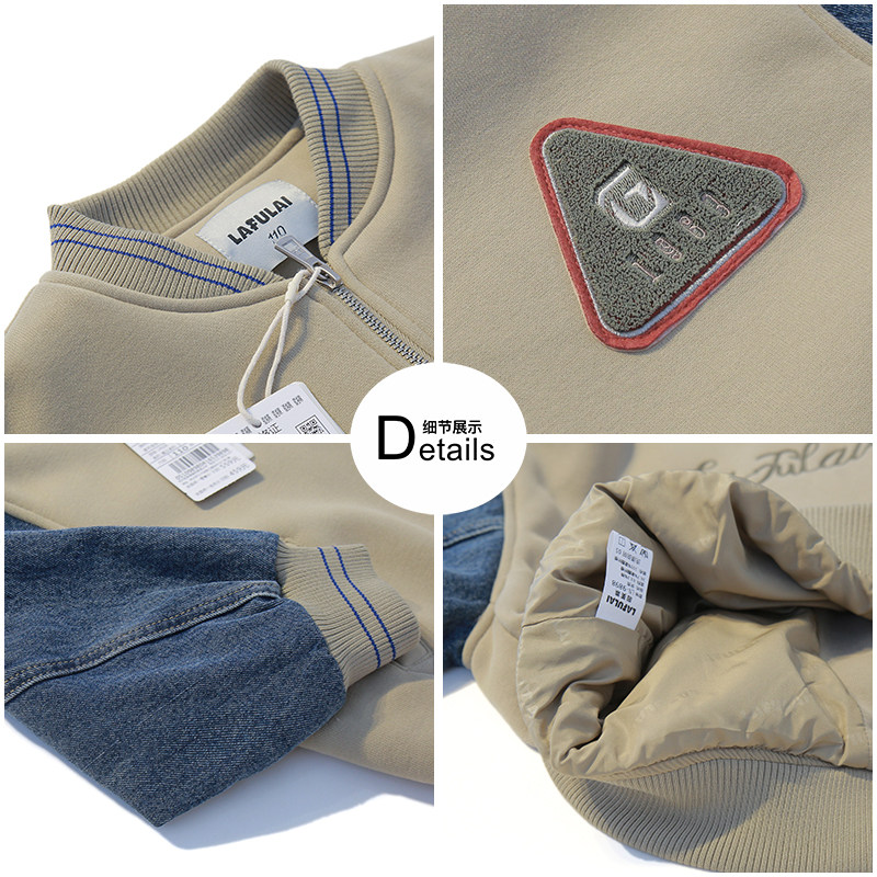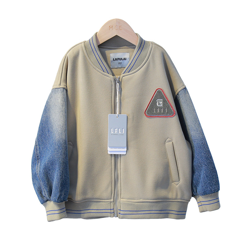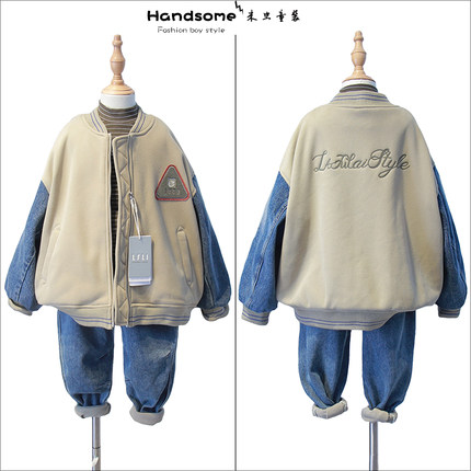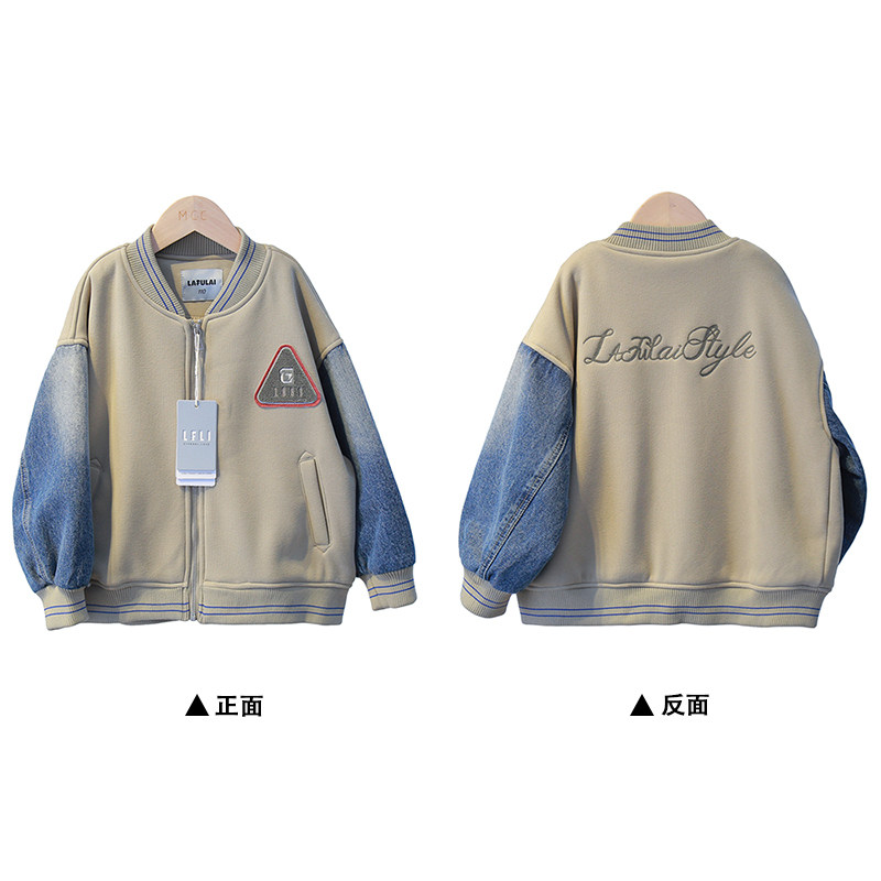 啦芙莱童装儿牛仔拼接双层加厚棒球服24初冬新男童亲子装外套9898