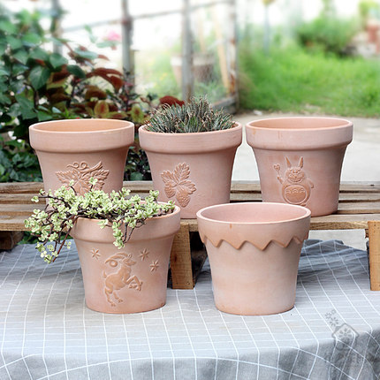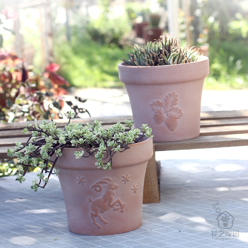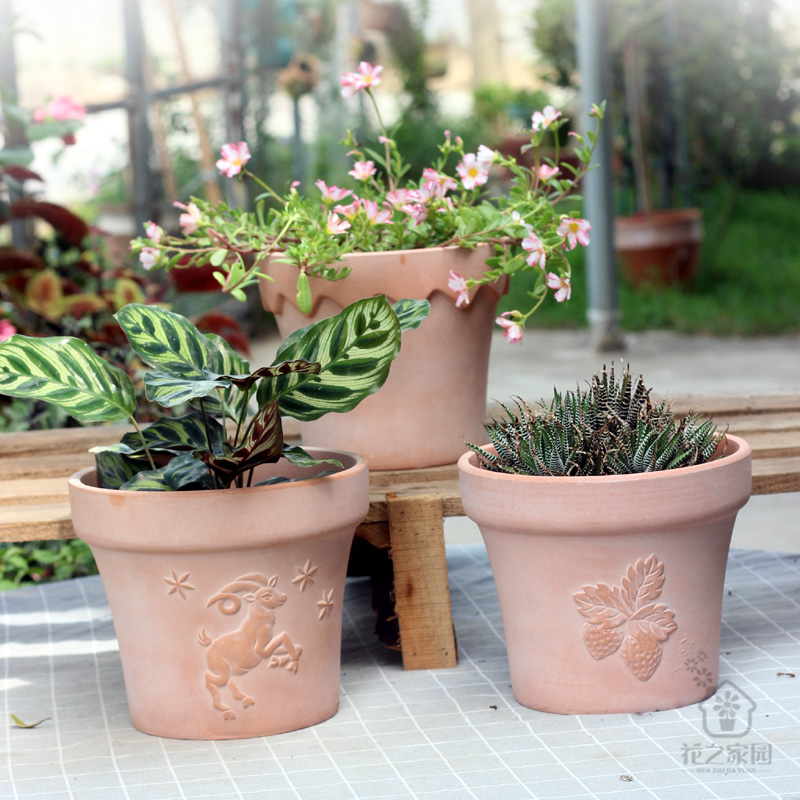 北欧创意复古红陶花盆阳台透气多肉绿植花卉小盆栽花园园艺陶土盆