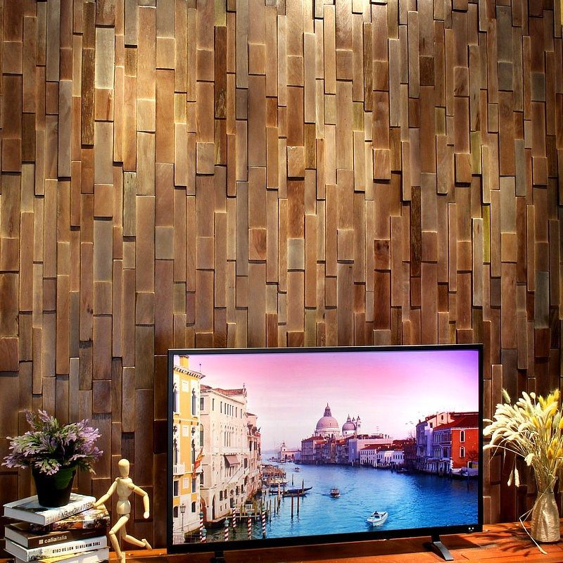 黑胡桃色实木马赛克 客厅电视影视背景墙 民宿酒店卧室装饰工业风
