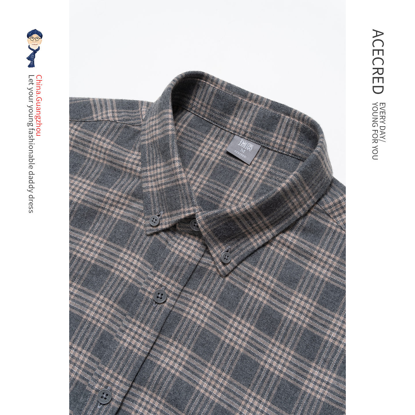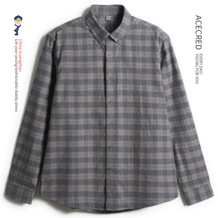 爸爸秋装纯棉磨毛长袖衬衫