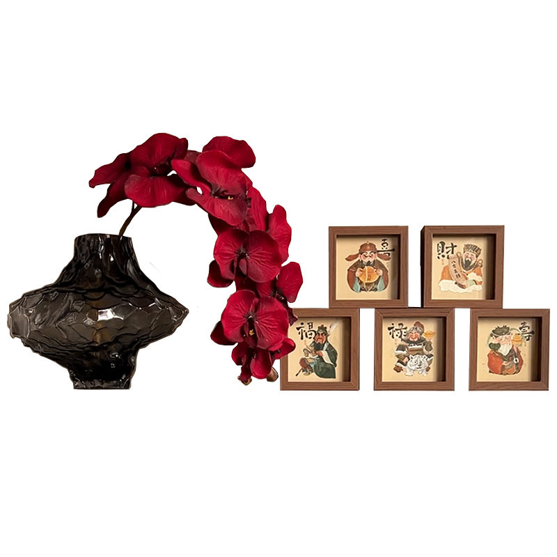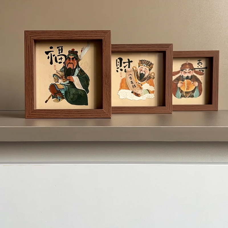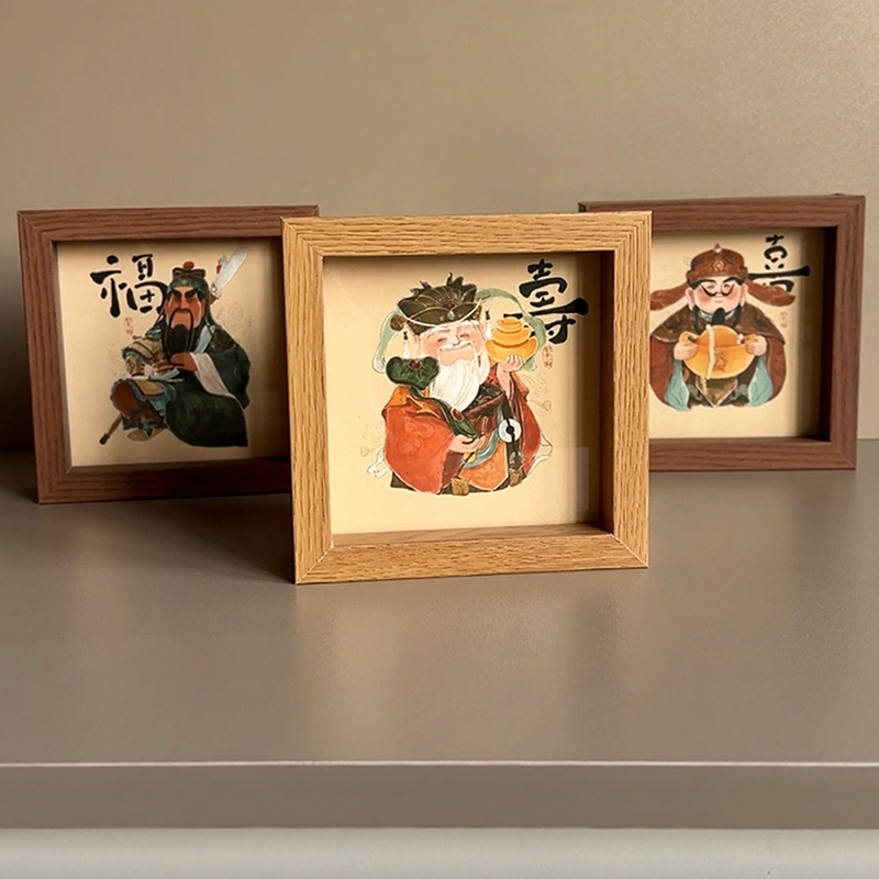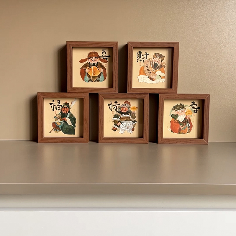 态生活 五路财神爷办公室桌面装饰摆台 手绘插画创意木质相框摆件