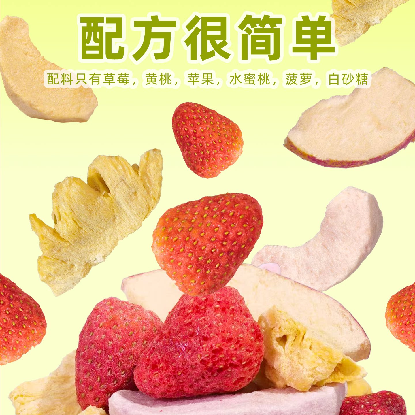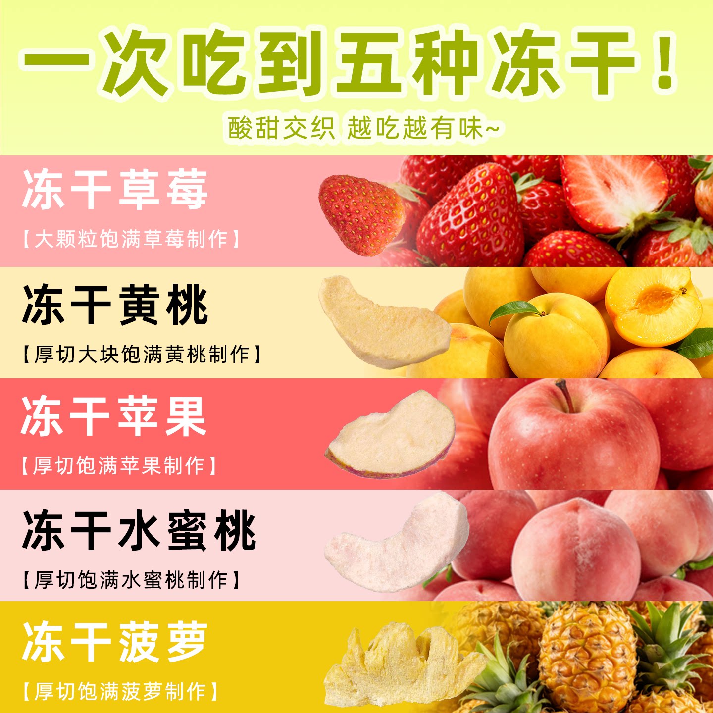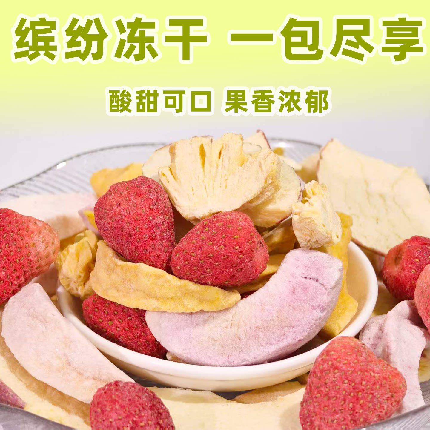 冻干混合水果脆冻干草莓冻干黄桃冻干苹果冻干水蜜桃冻干菠萝零食