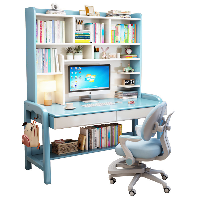 儿童习桌卧室可升降生写字桌书房写字台带书架简约桌