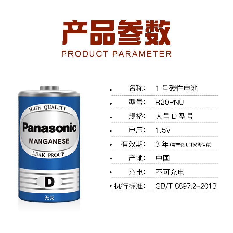 松下1号电池D型一号大号碳性R20热水器煤气灶天然气液化气燃气炉