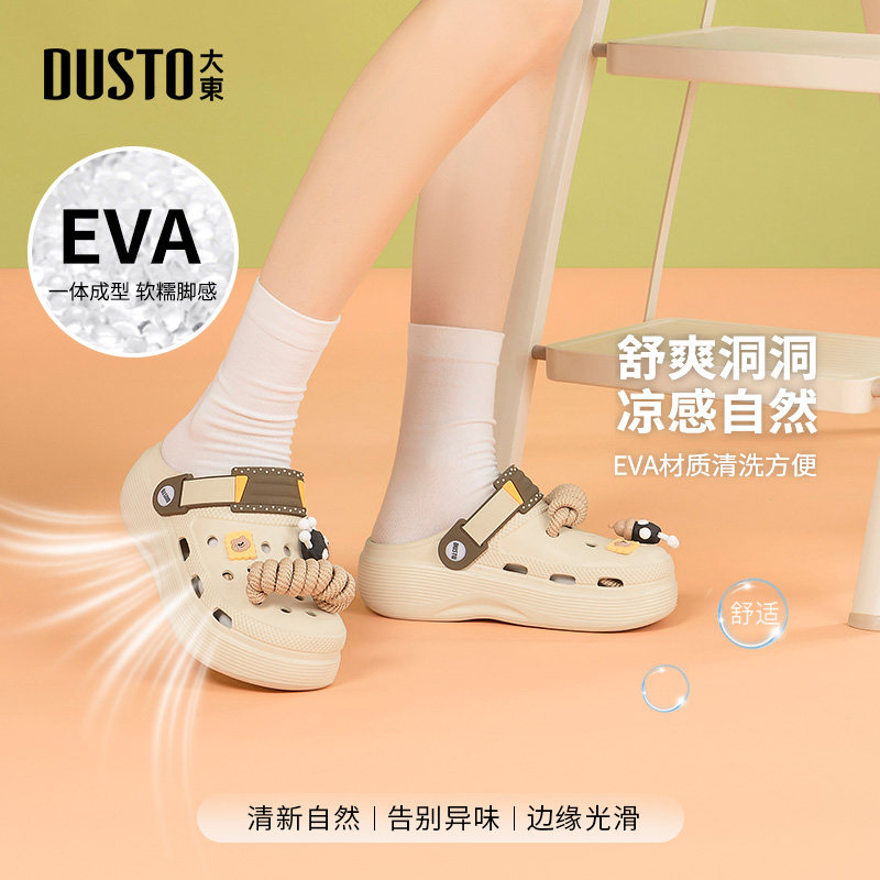 大东官方厚底洞洞鞋女款2026新款夏季外穿旅游踩屎感拖鞋两穿凉鞋