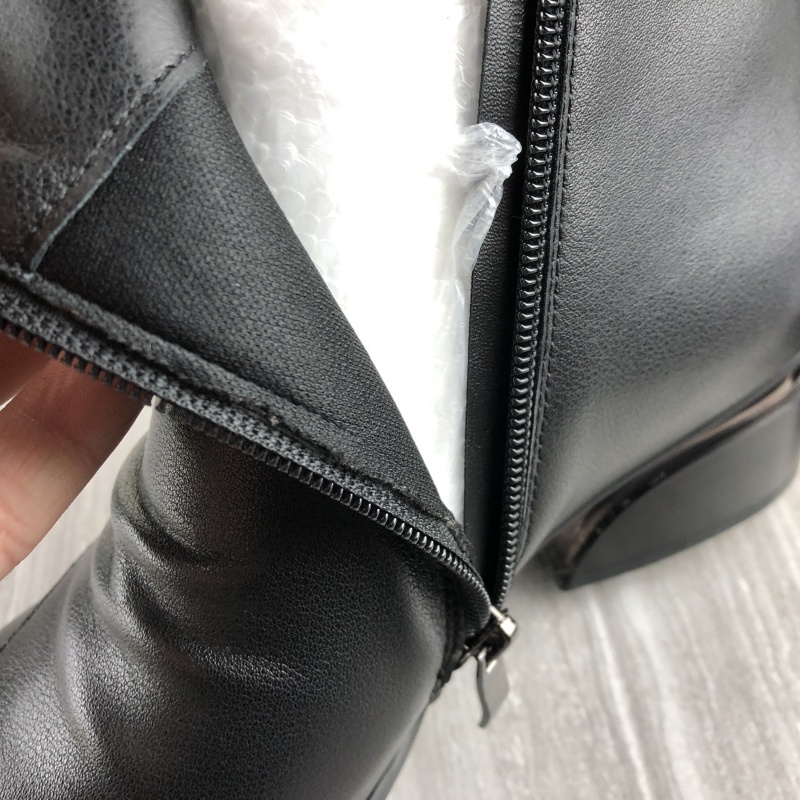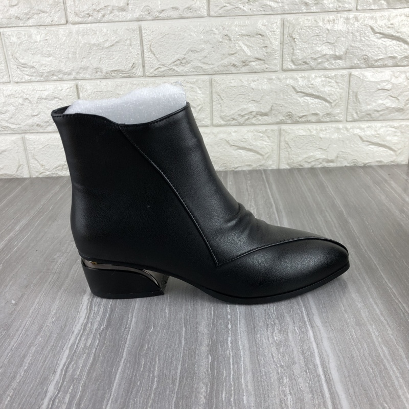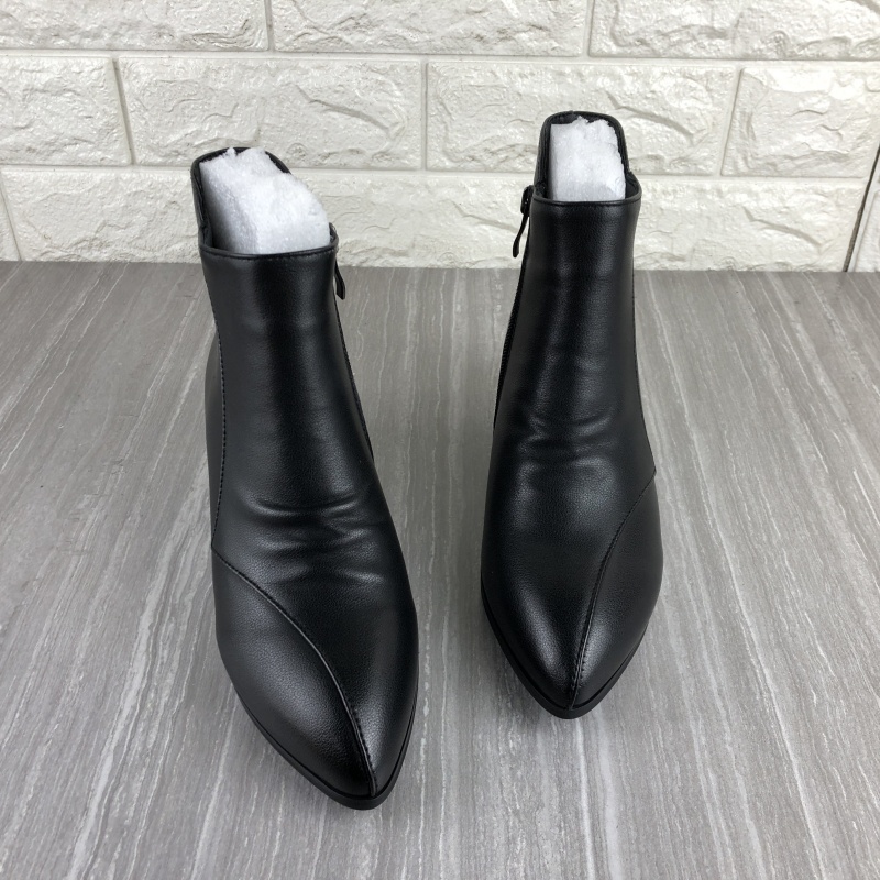 断码撤柜新款真皮女靴粗跟侧拉链尖头皮鞋简约百搭通勤短靴牛皮