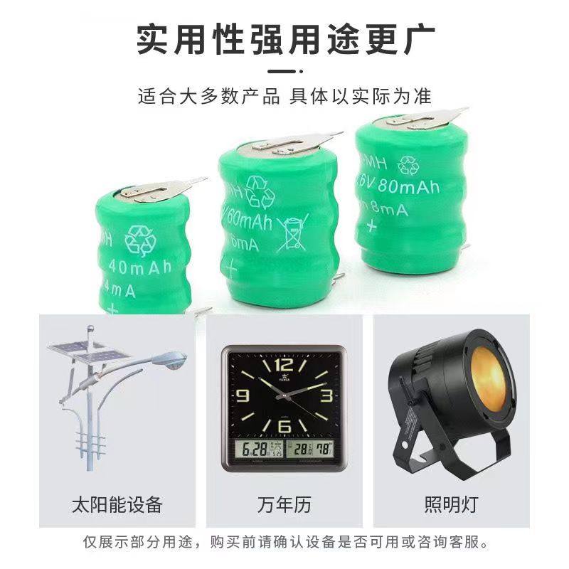 纽扣/扣式镍氢可充电电池 3.6V 40/60/80MAH 1.2V 2.4V 4.8V 20MA