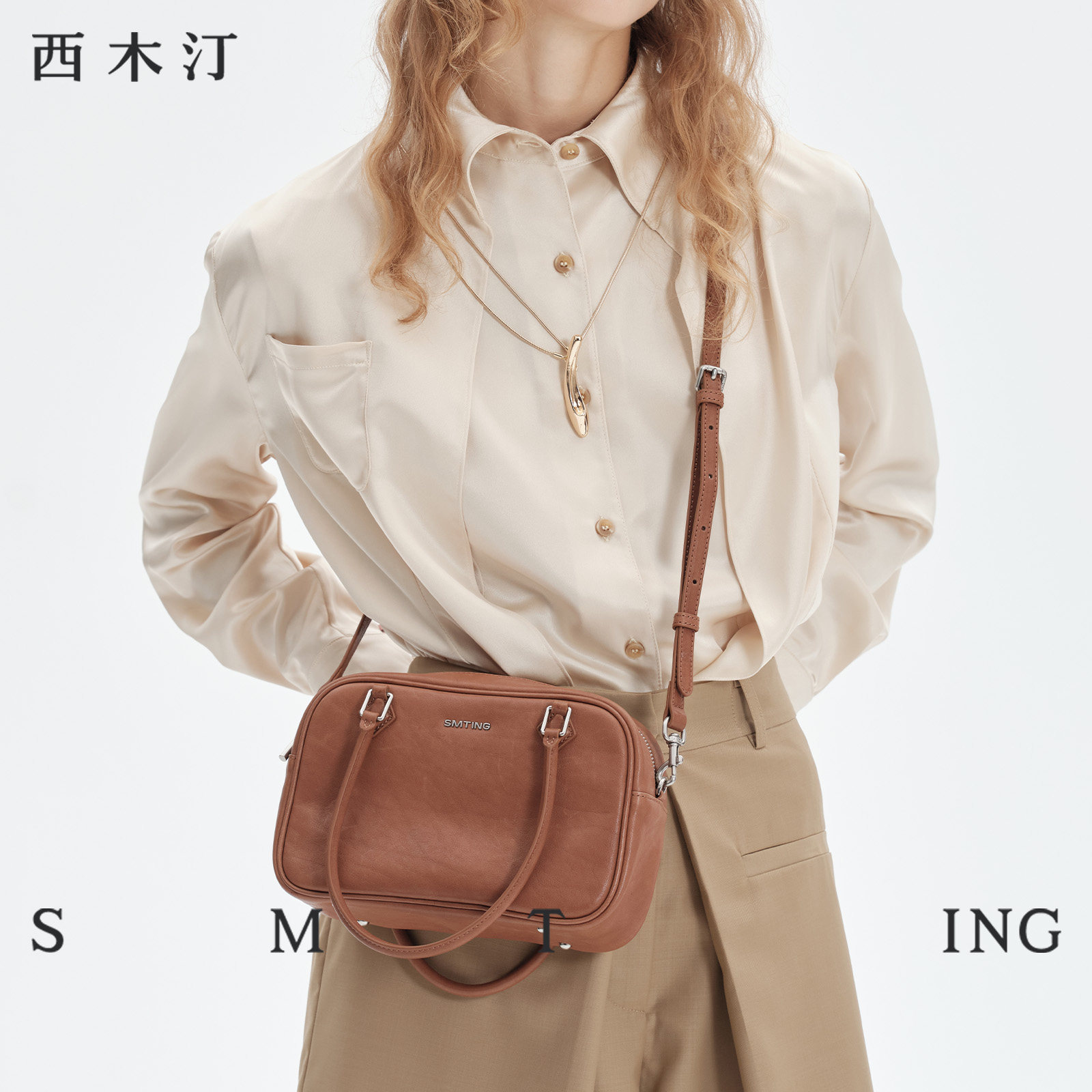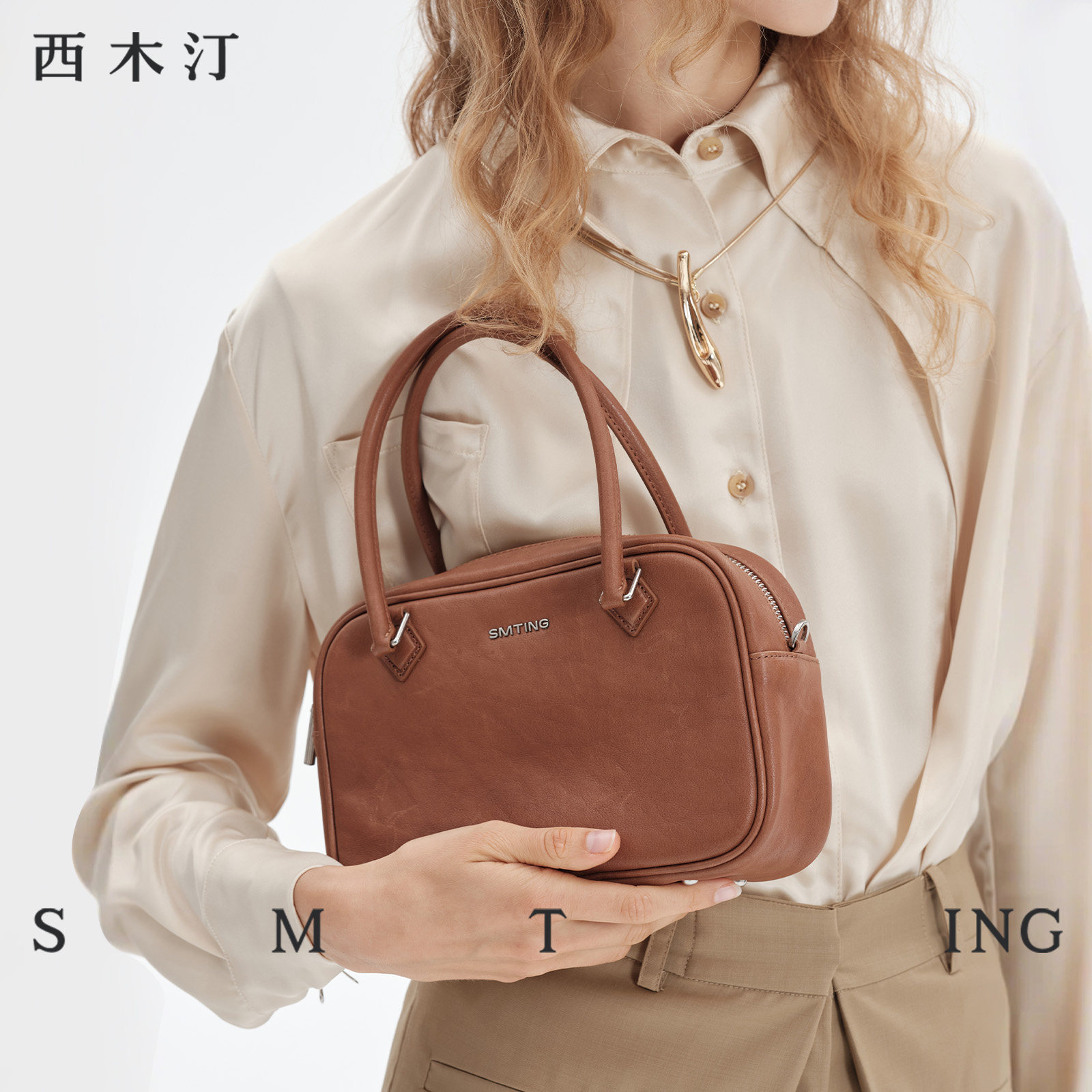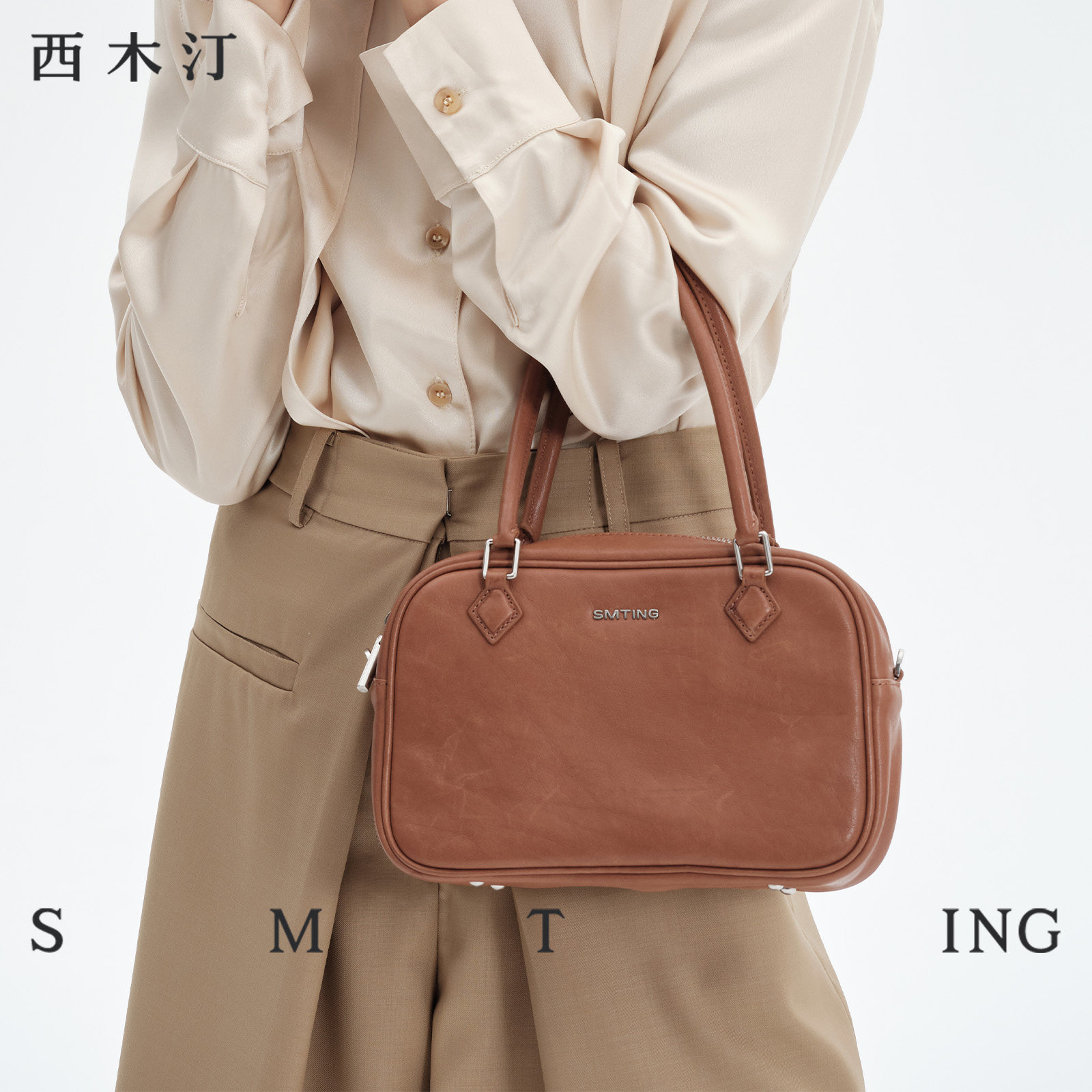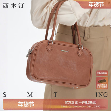 西木汀 慕思 头层植鞣牛皮波士顿包包女手提包手拎高级感斜挎包