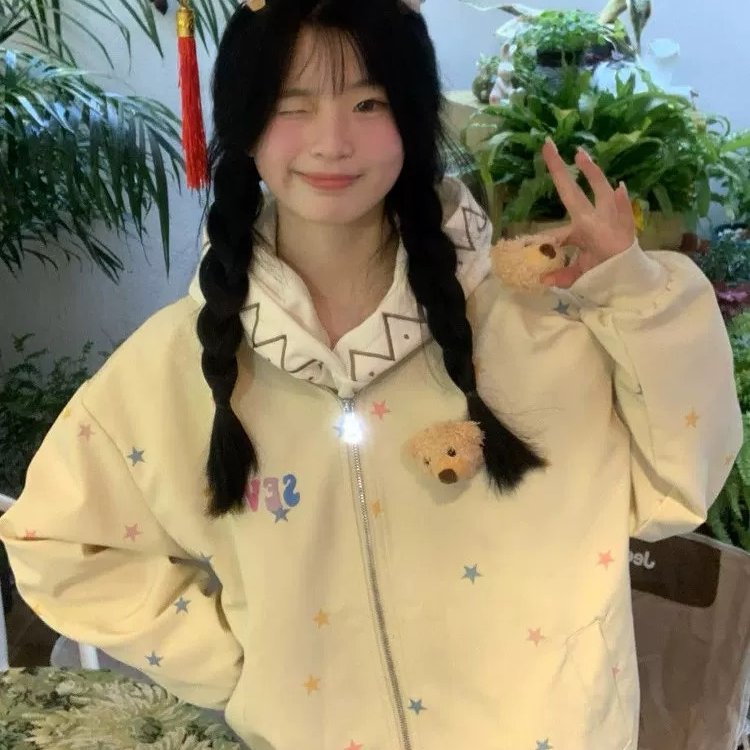 星星印花小熊棒球服外套女2025春秋新款小众设计感宽松夹克上衣潮