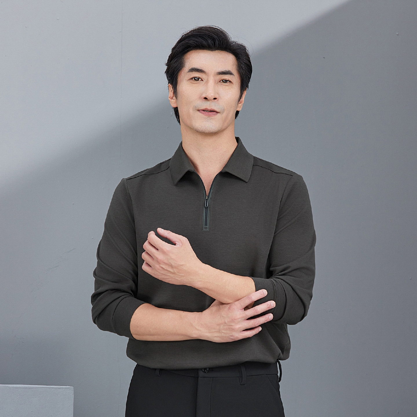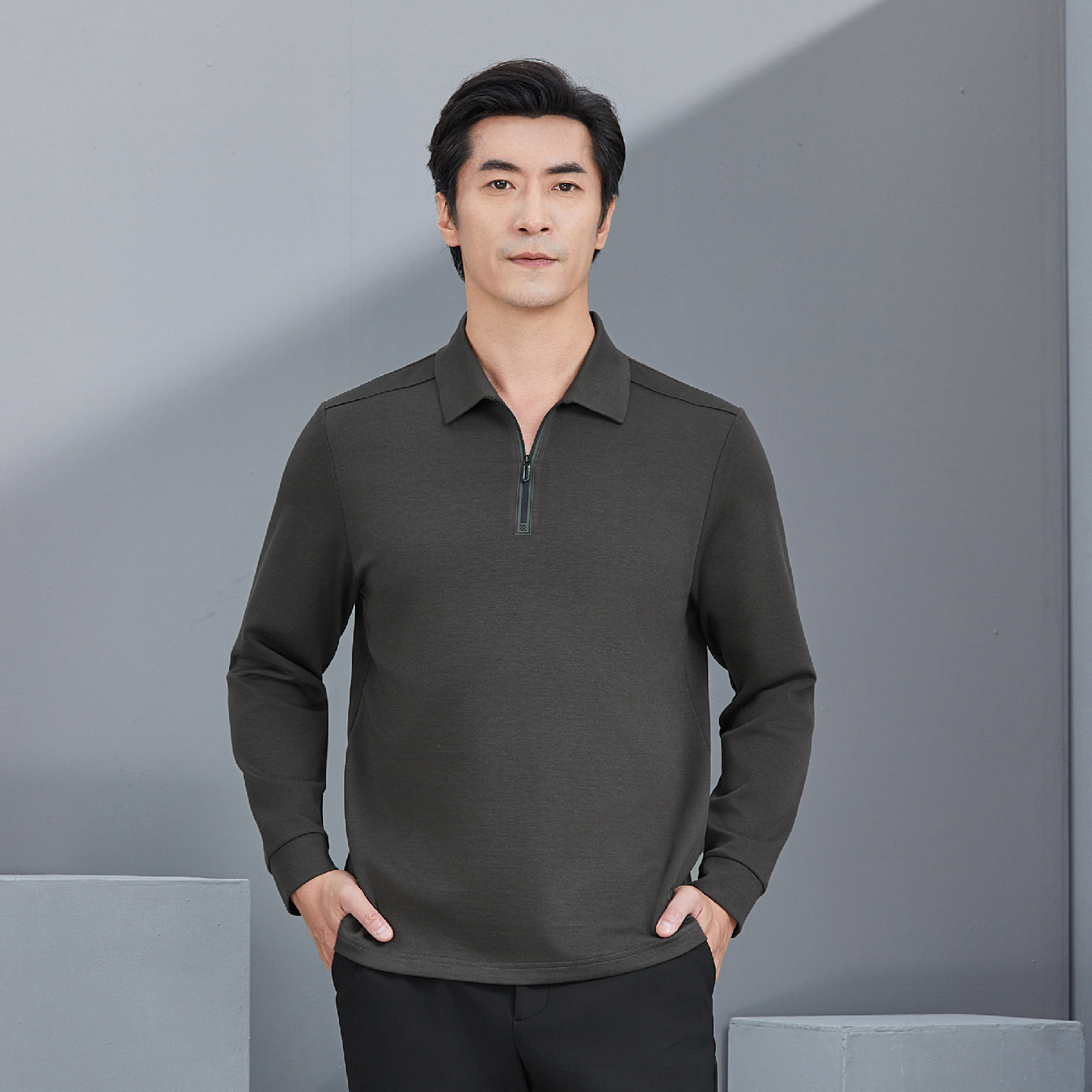 红都男士长袖T恤翻领拉链门襟商务休闲时尚中老年爸爸装针织t恤衫