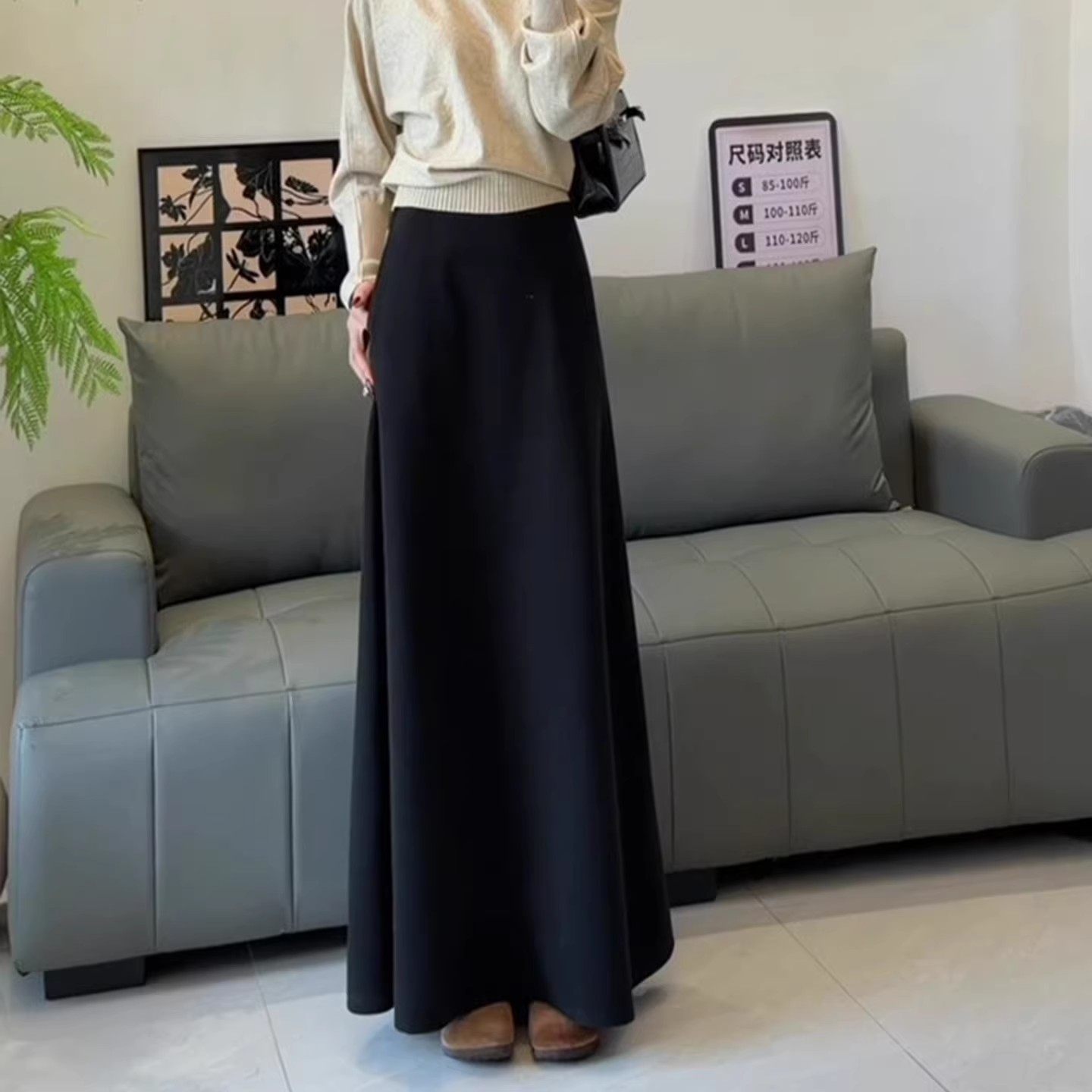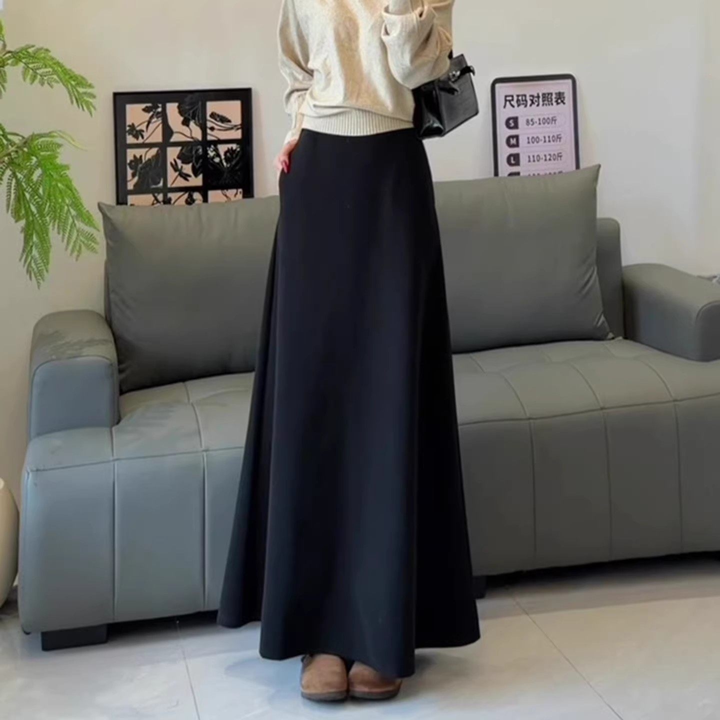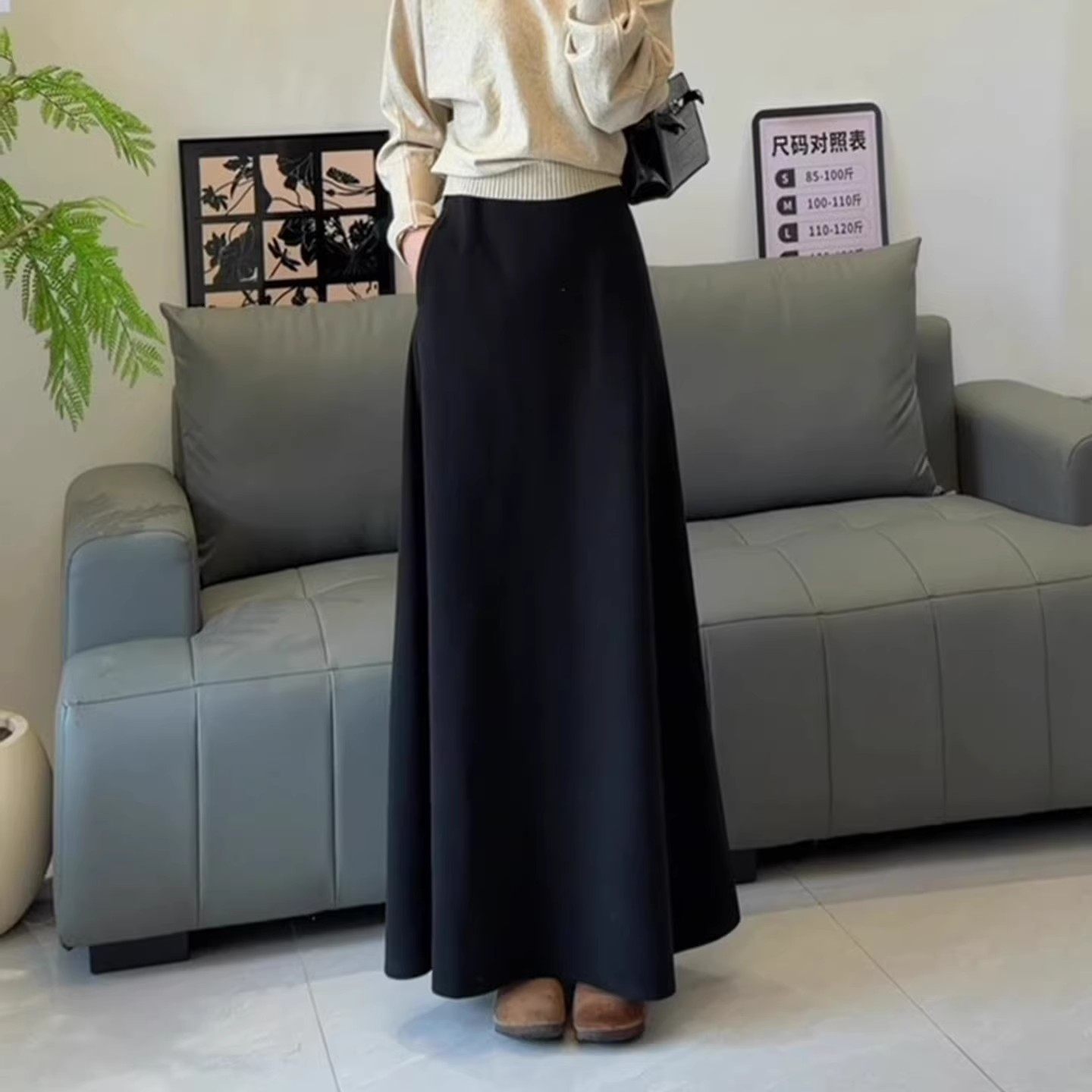 2025秋冬新款高腰黑色毛呢A字半身裙女显瘦垂感百搭气质加绒长裙