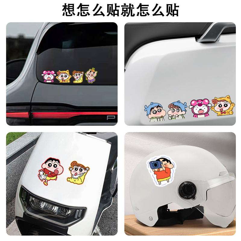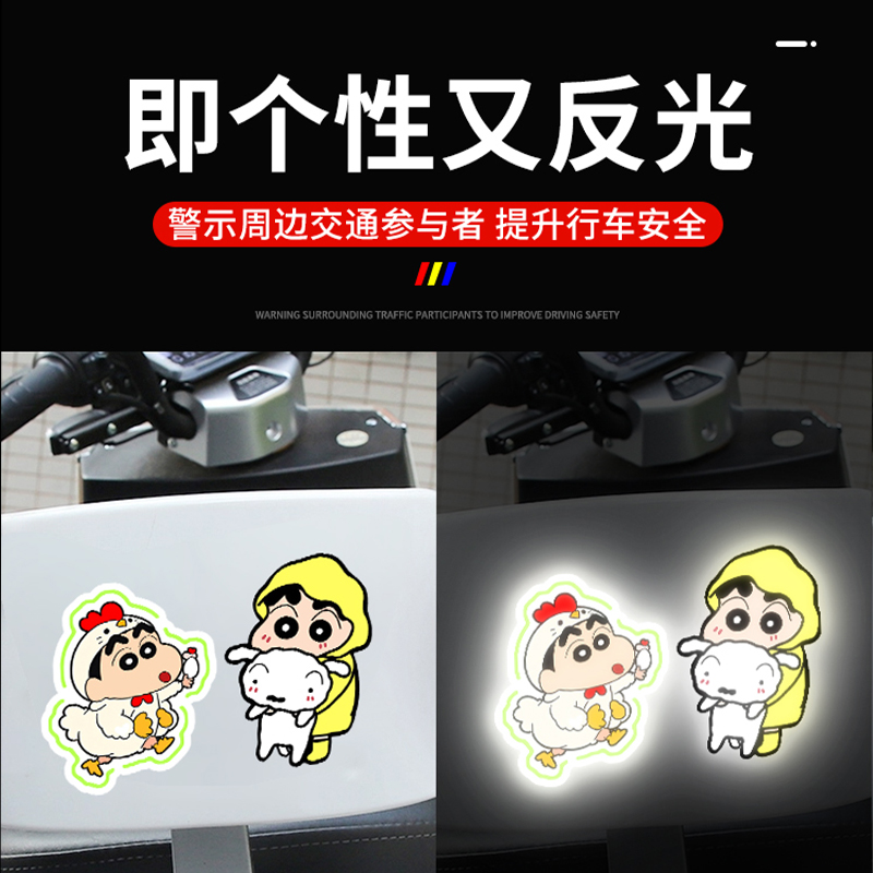 蜡笔小新汽车个性车贴电动车夜间反光贴头盔装饰划痕遮挡遮盖防水