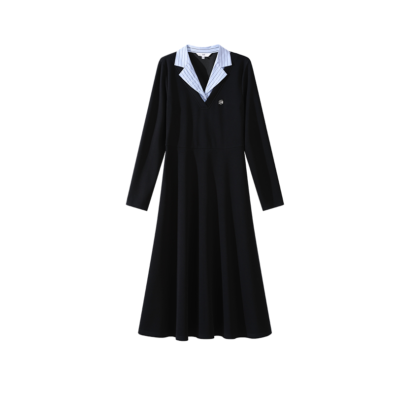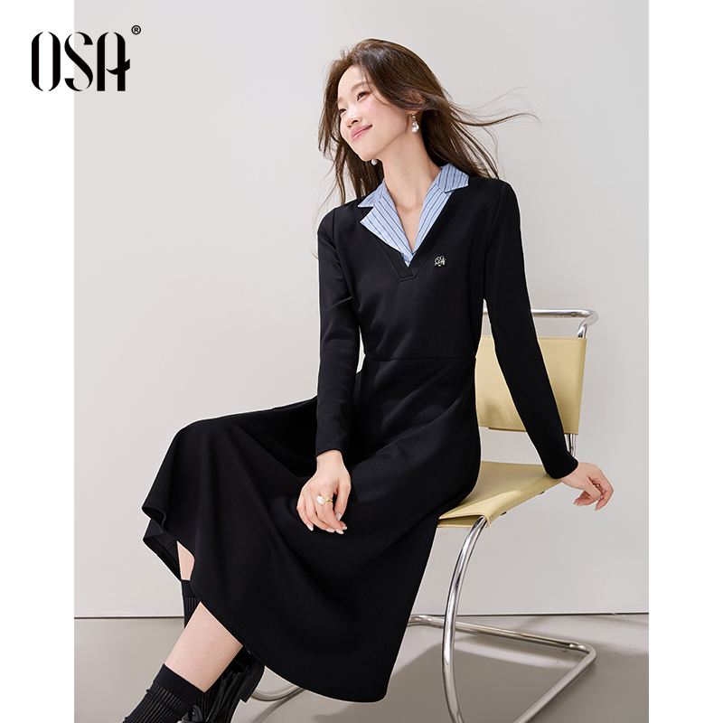 OSA假两件高智感翻领长袖连衣裙