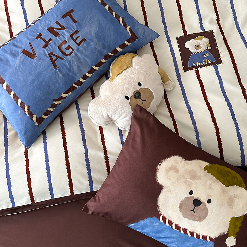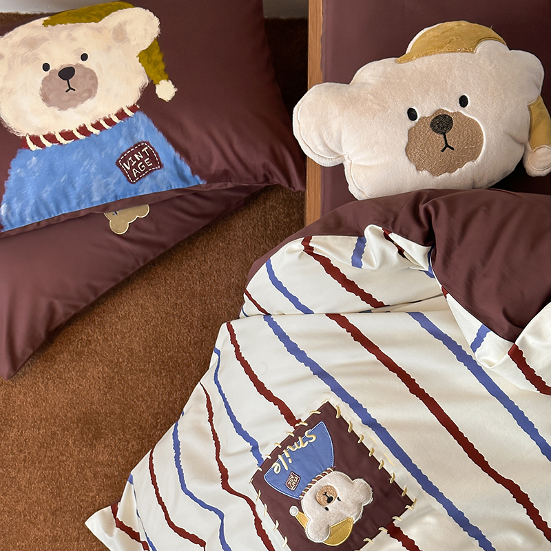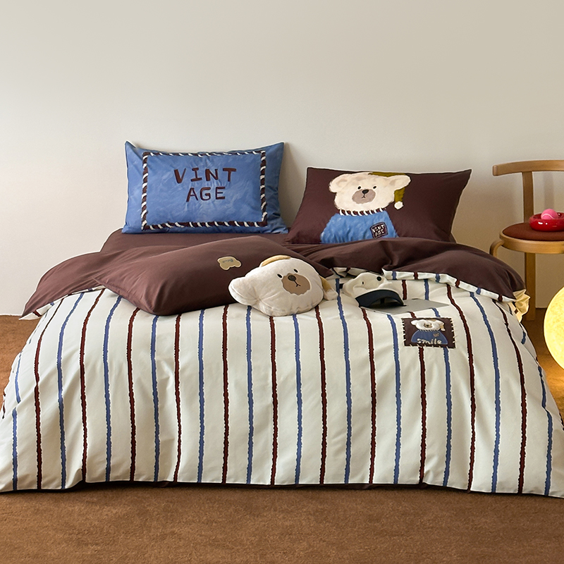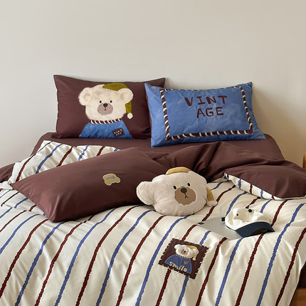 韩国ins安可拉熊100S全棉软磨毛长绒棉四件套儿童趣纯棉床品套件