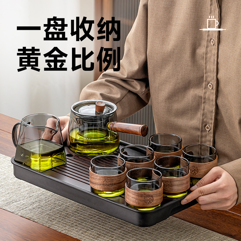 玻璃茶具套装家用茶盘办公室客厅喝茶会客功夫茶杯2024新款泡茶壶