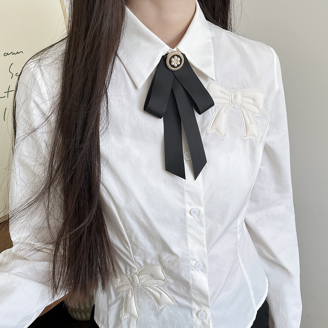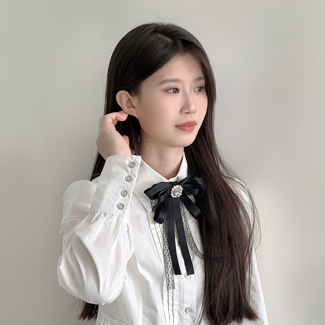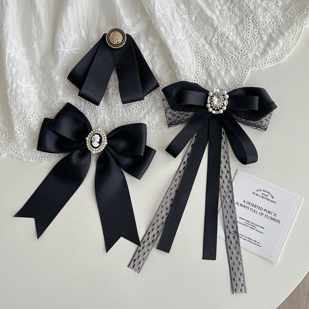 领结女黑色蝴蝶结学院风蕾丝胸针高级精致韩版领花复古衬衫装饰