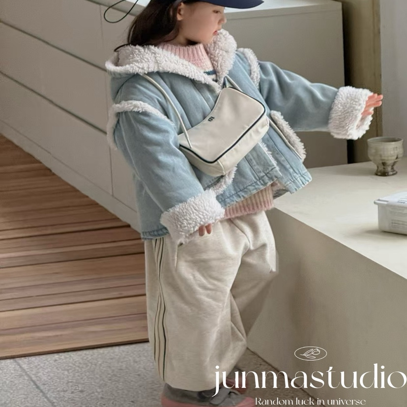 品牌童装女童宝宝儿童冬装新款韩系洋气加绒连帽牛仔外套棉衣棉服