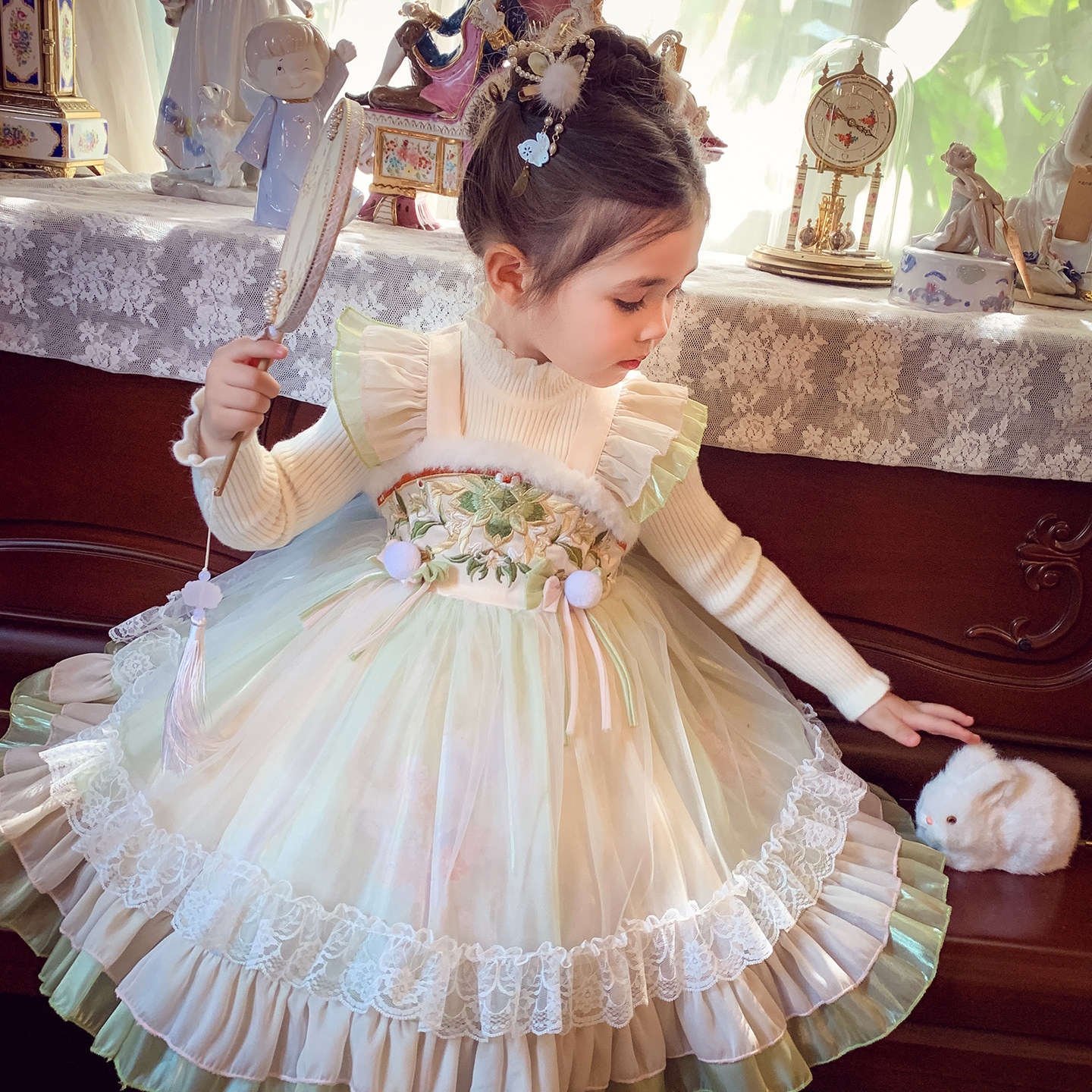 小女孩新中式国风汉服假两件裙子