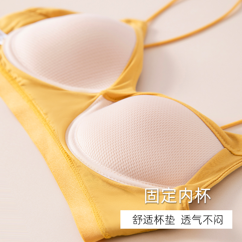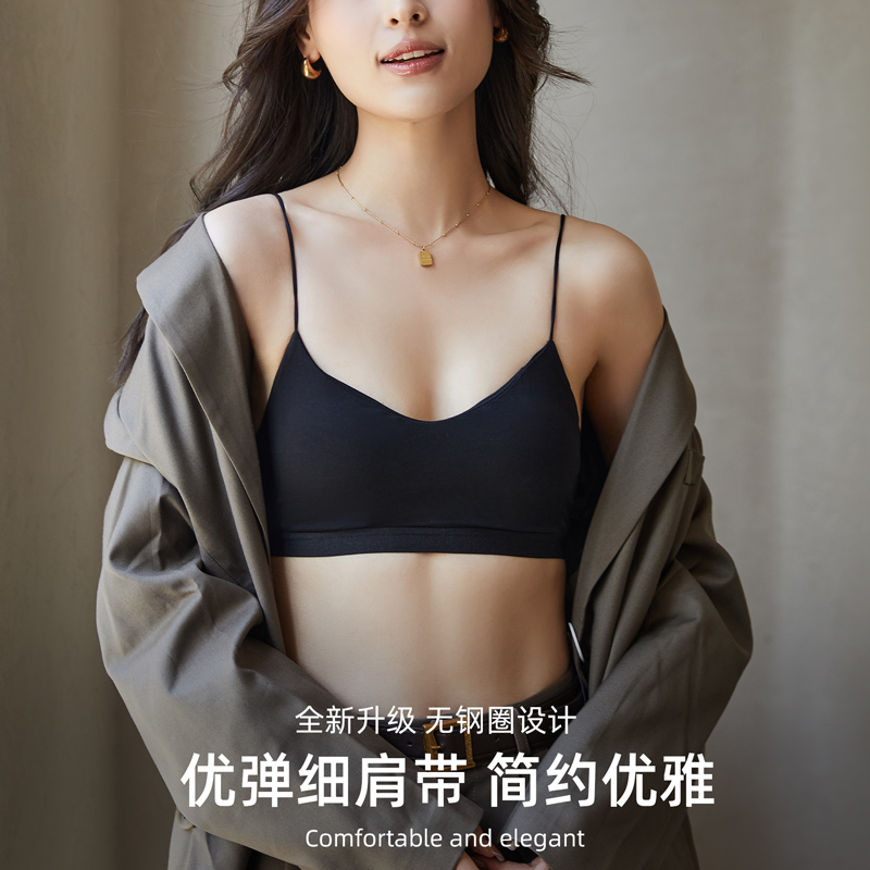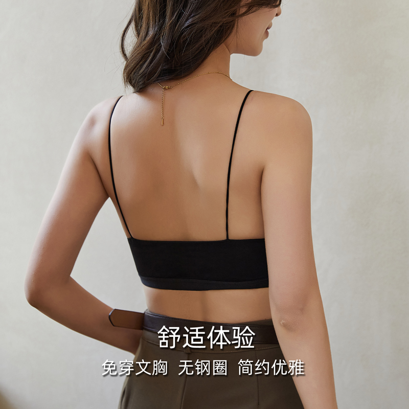 细带无钢圈运动小胸聚拢美背文胸一体背心吊带黑色法式抹胸内衣女