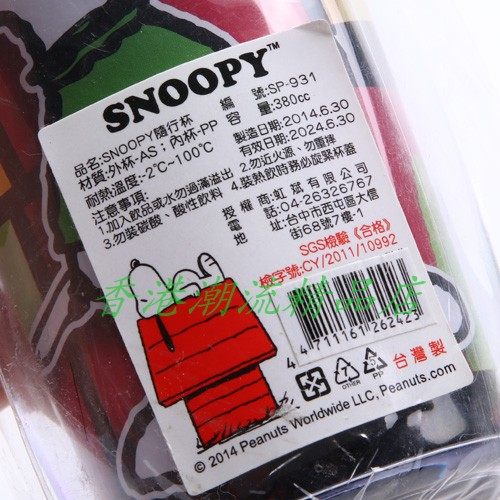 台灣Snoopy史努比Joe Cool塑料健身夏季胶水杯380ml隨身杯SP931
