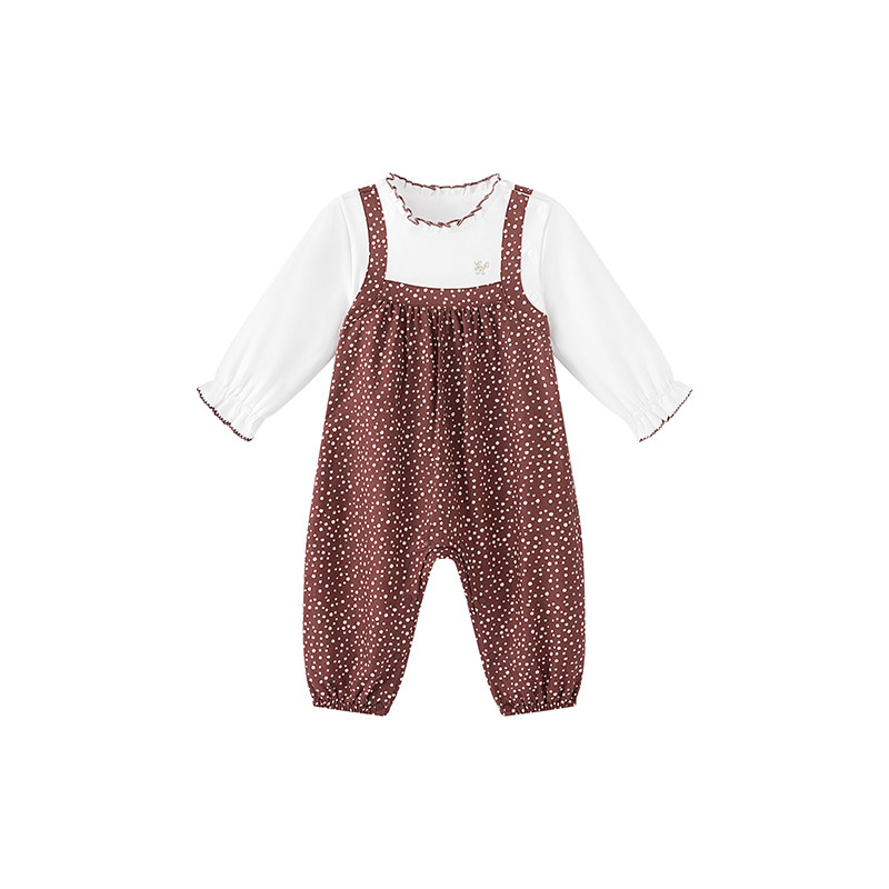 【商场同款】英氏婴儿衣服纯棉女童连身衣春季长袖假两件新款