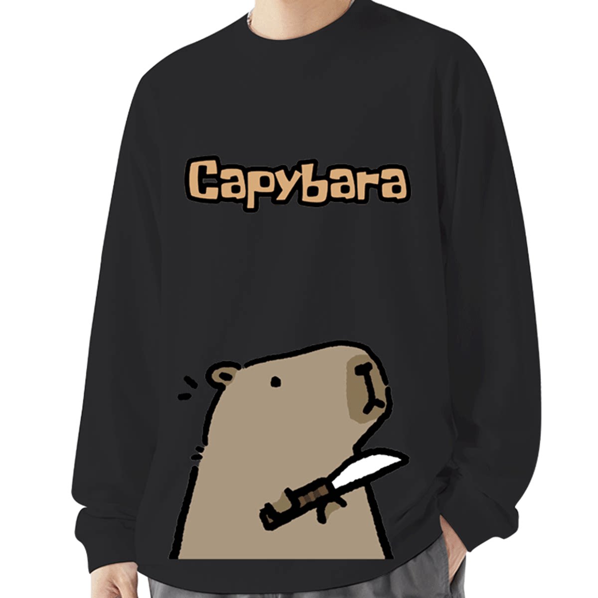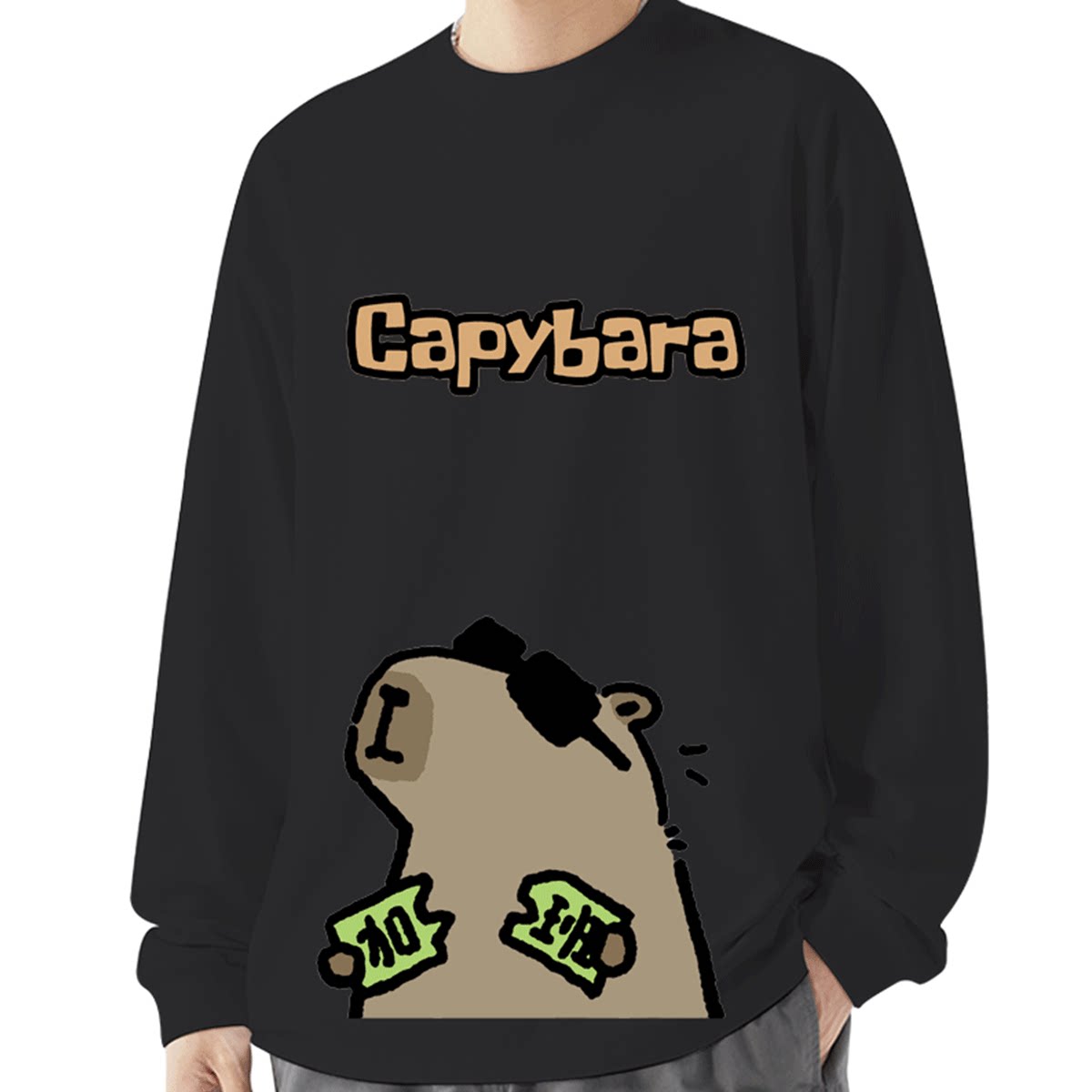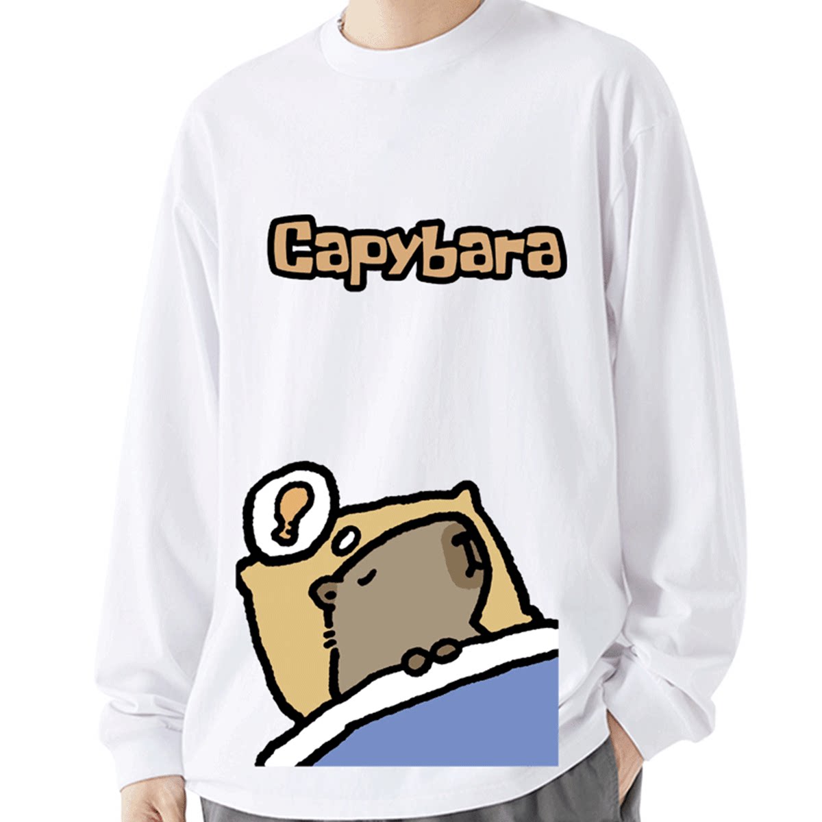 水豚卡皮吧啦capybara上班族表情包周边男女休闲定制打底长袖T恤