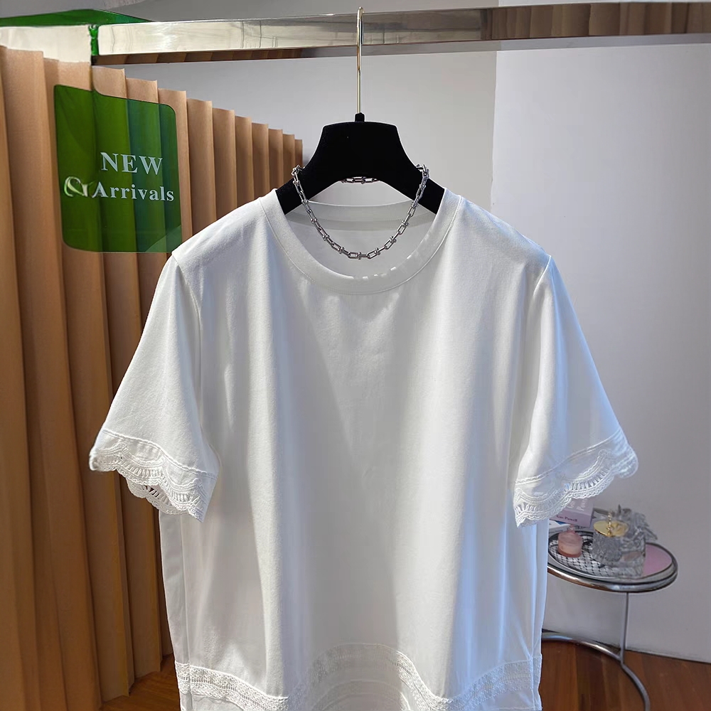 蕾丝拼接纯棉t恤女短袖圆领上衣