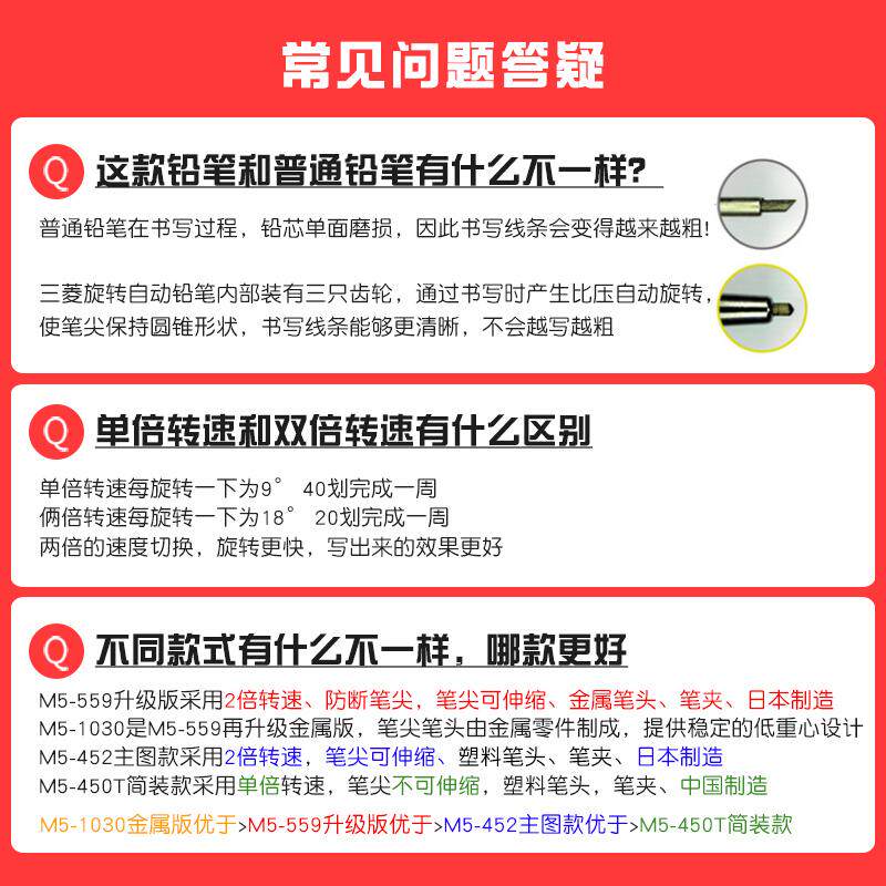 日本三菱UNI自动铅笔铅芯旋转M5-559学生铅笔不断芯绘画专用考试