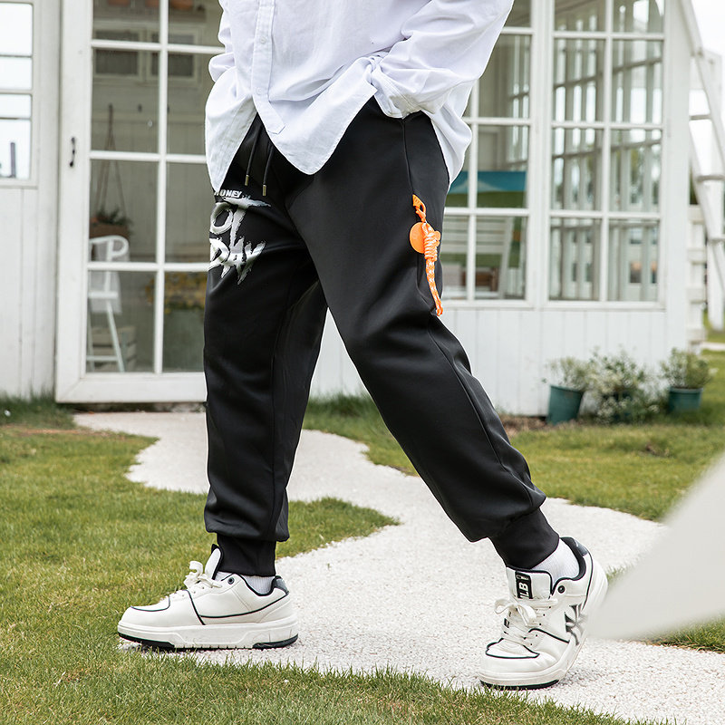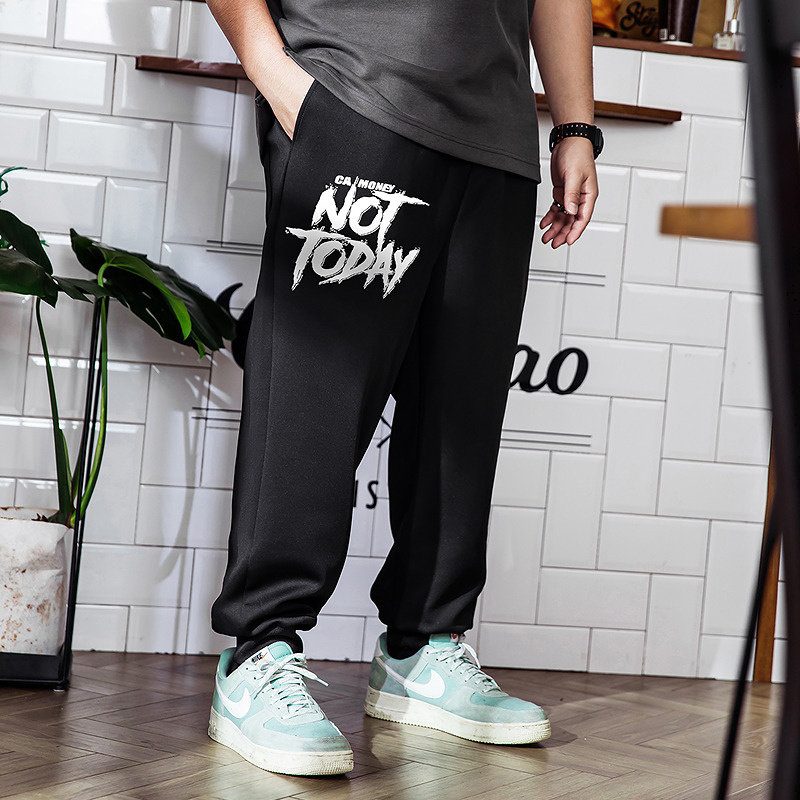大码潮牌男装宽松大码束脚街头潮流美式休闲涂鸦字母印花九分卫裤