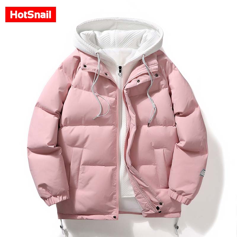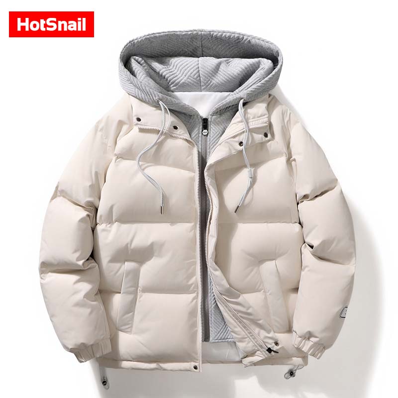 连帽羽绒服男冬季新款青少年美式潮牌假两件棉服学生宽松帅气外套