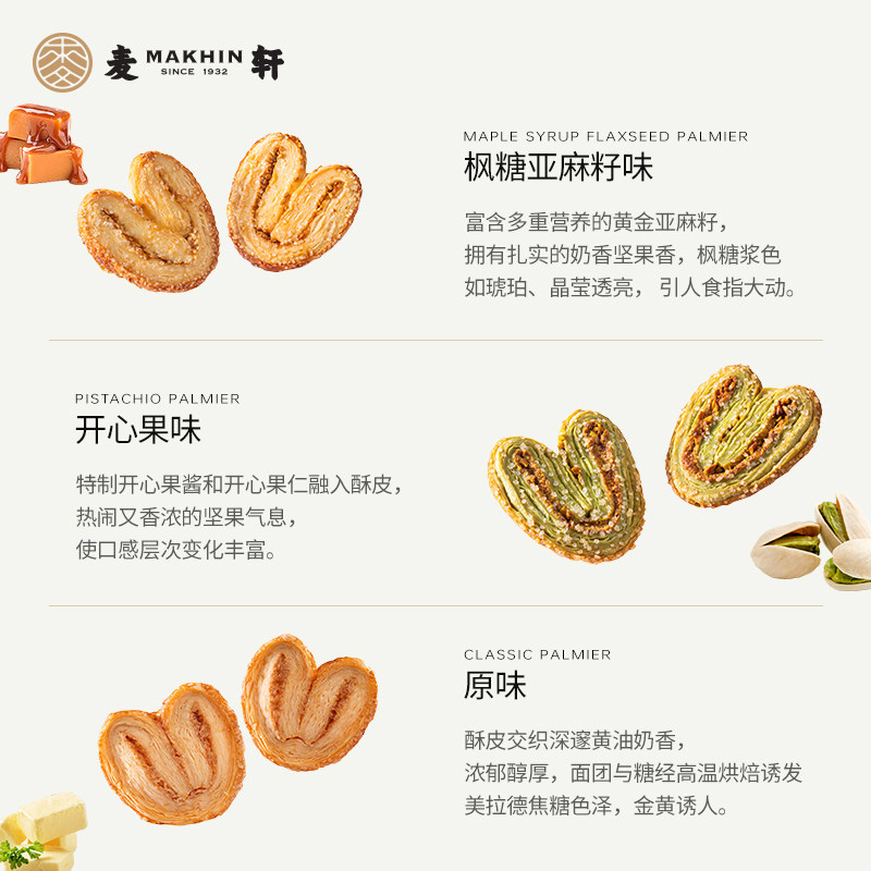 麦轩酥松大蝴蝶酥进口黄油枫糖亚麻籽开心果什锦甜心酥手信伴手礼