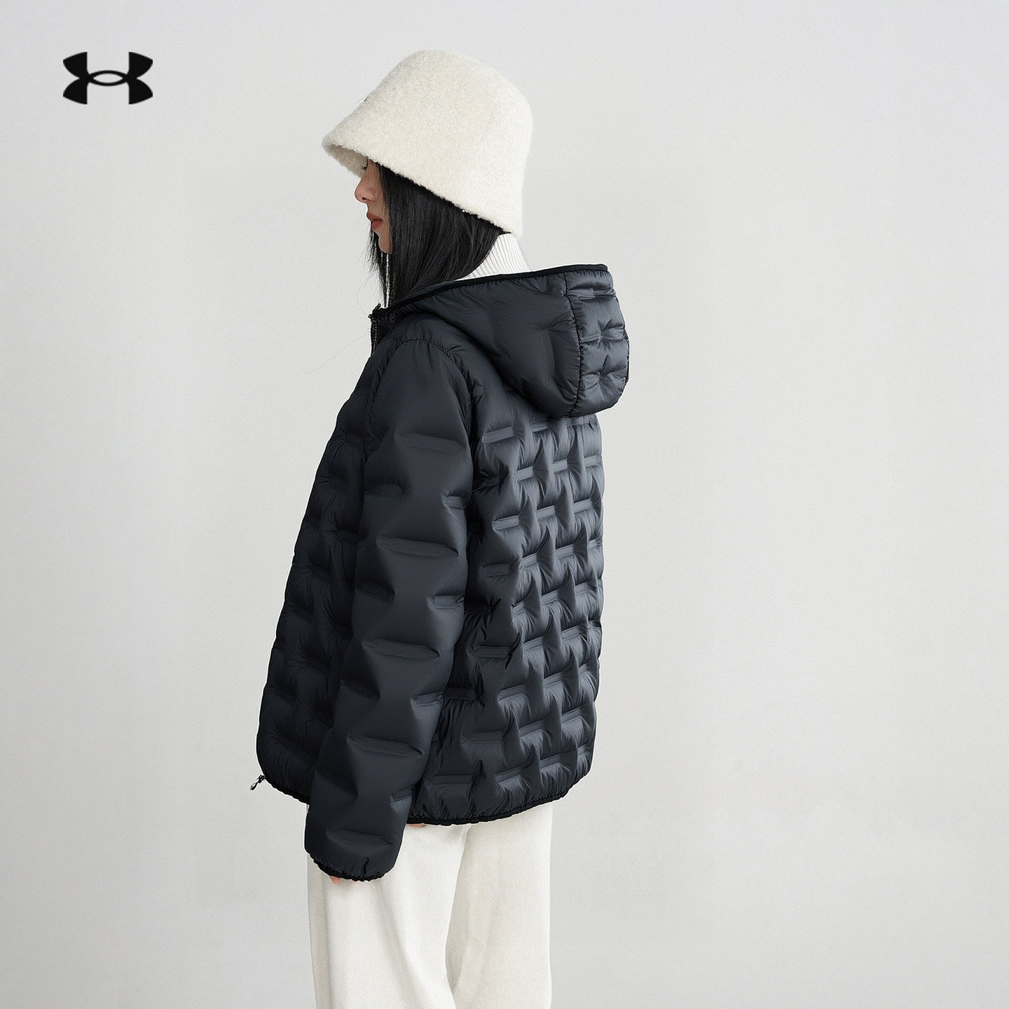 安德玛UA官方女士连帽修身轻薄羽绒服防寒秋冬短款90鸭绒保暖外套