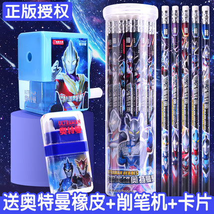 奥特曼铅笔男孩铅笔小学生专用新一二年级小学生铅笔套装幼儿园初学者洞洞笔HB带橡皮擦卡通儿童学习用品批发