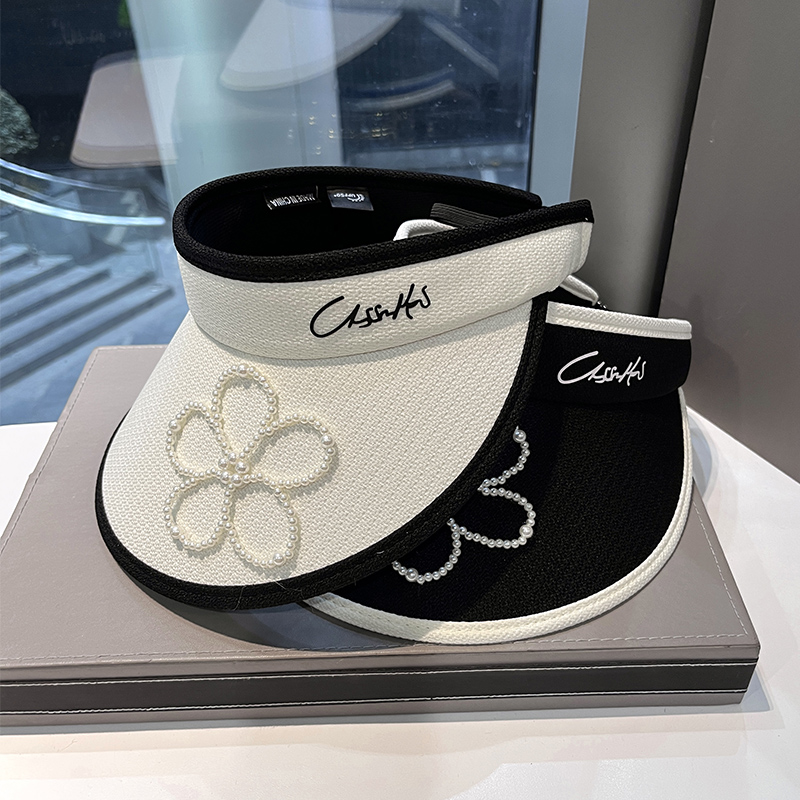 小香风珍珠花朵空顶帽子女款夏季出游大帽檐遮阳防晒显脸小太阳帽