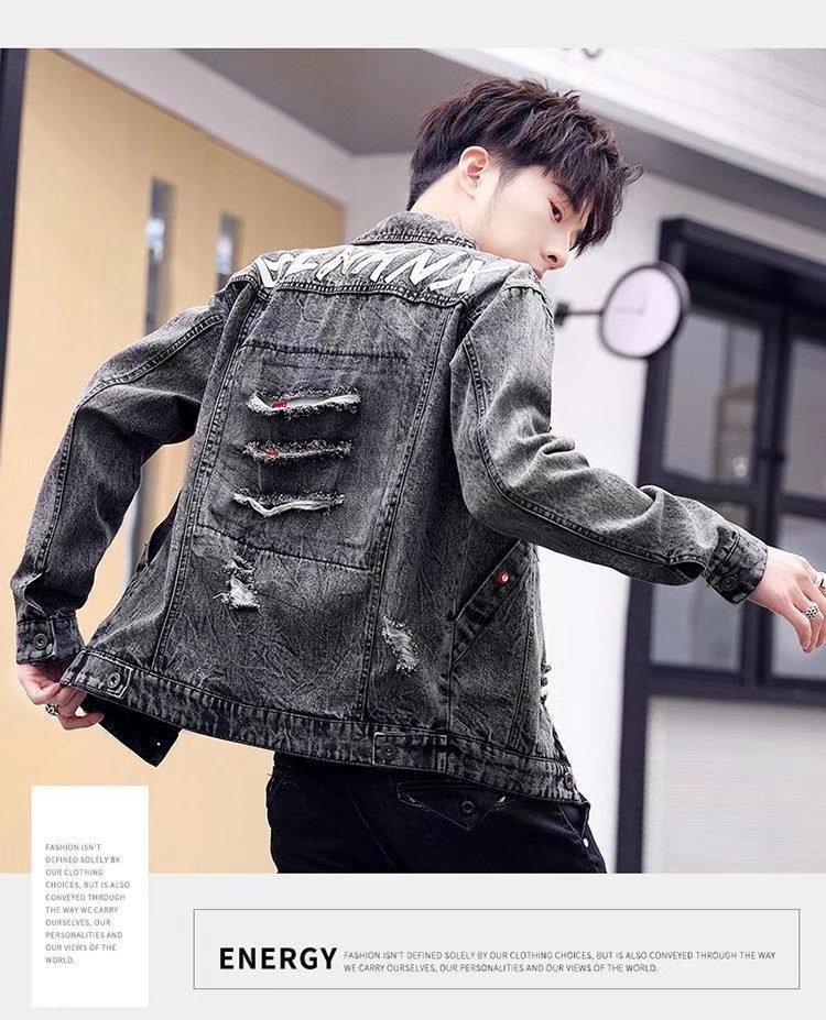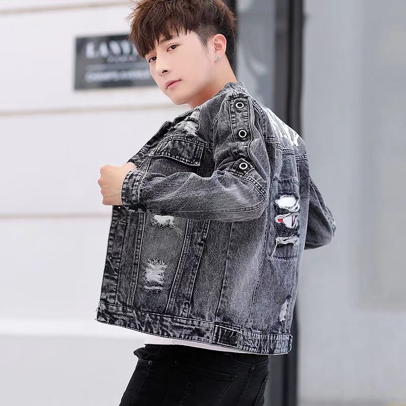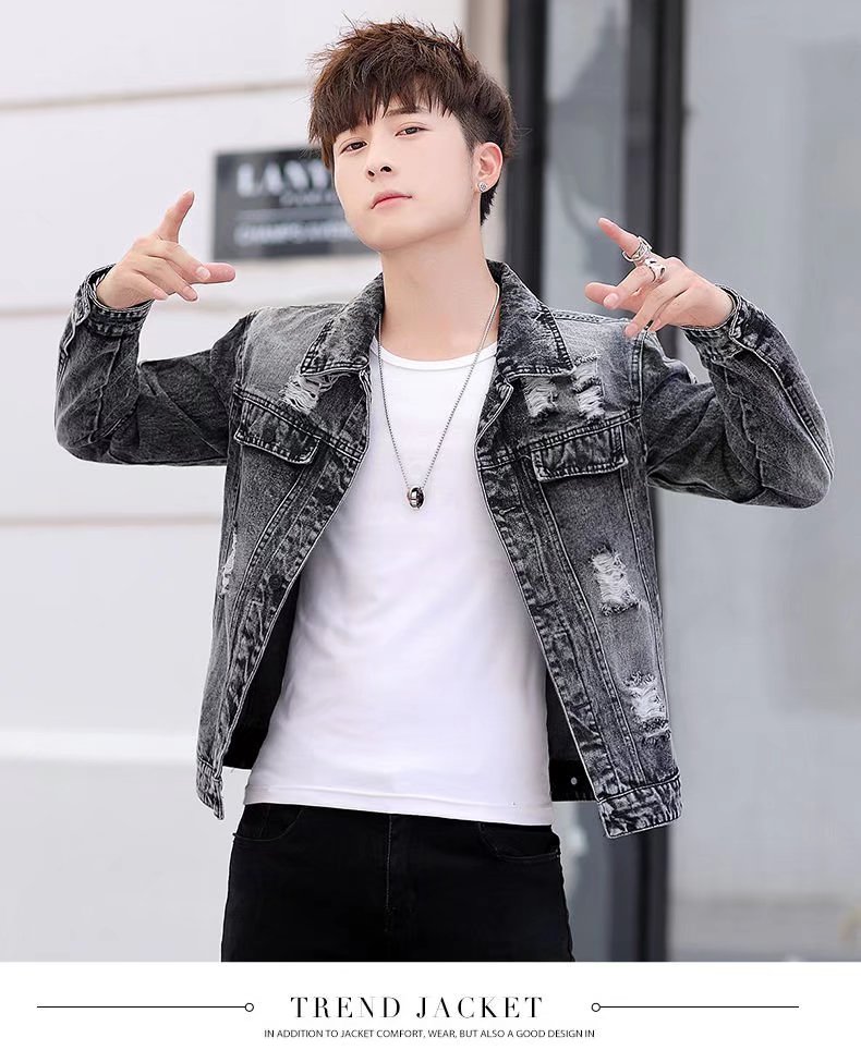 新款秋季牛仔外套男蓝色韩版潮流修身破洞夹克男装帅气上衣服褂子