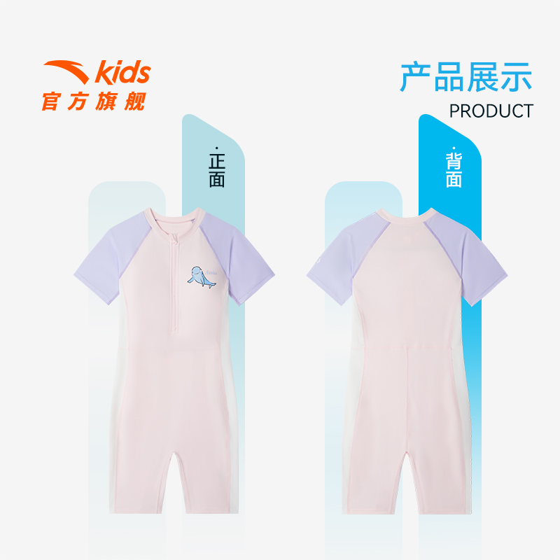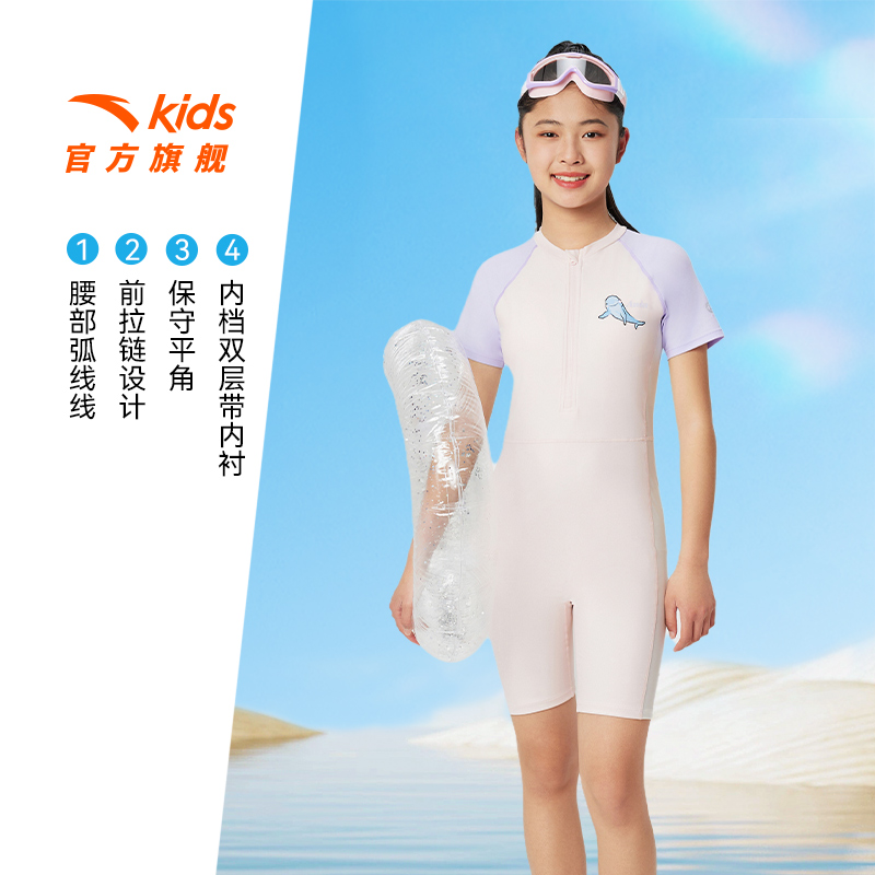 安踏女童泳衣夏季2025新款小飞象连体泳装中大童女孩专业训练泳衣