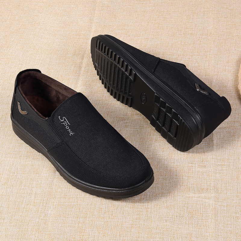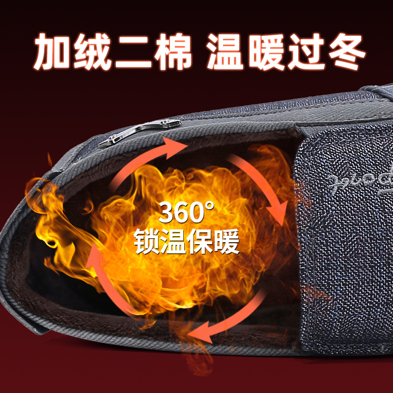 老北京布鞋秋冬薄绒二棉男鞋防滑软底中老年人爸爸鞋薄棉鞋男大码