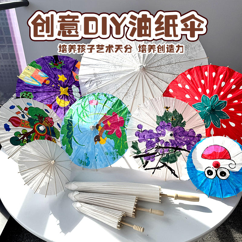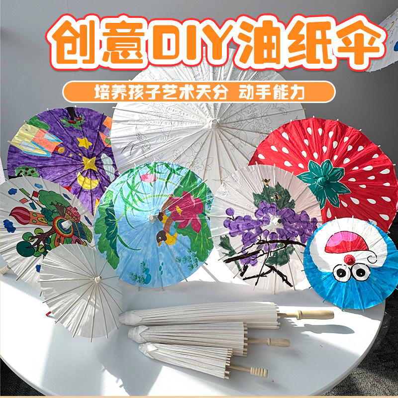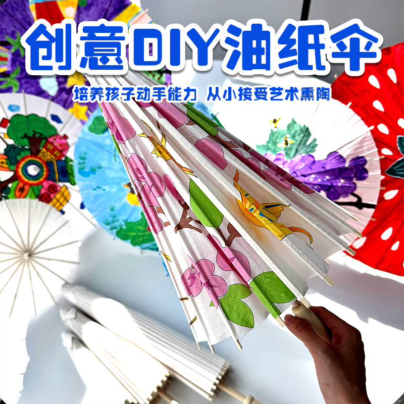 空白油纸伞 儿童diy手工材料幼儿园手绘绘画白色雨伞中国古风道具