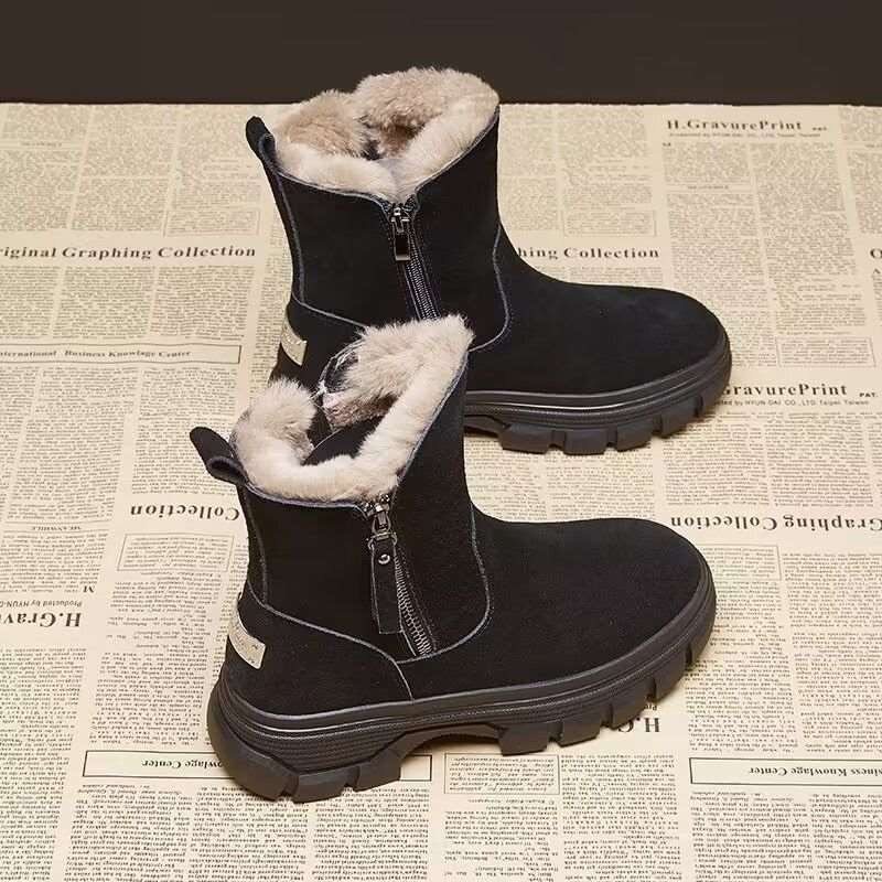 雪地厚底靴女四季保暖新款棉鞋一体棉靴加绒短靴防滑橡胶轻便