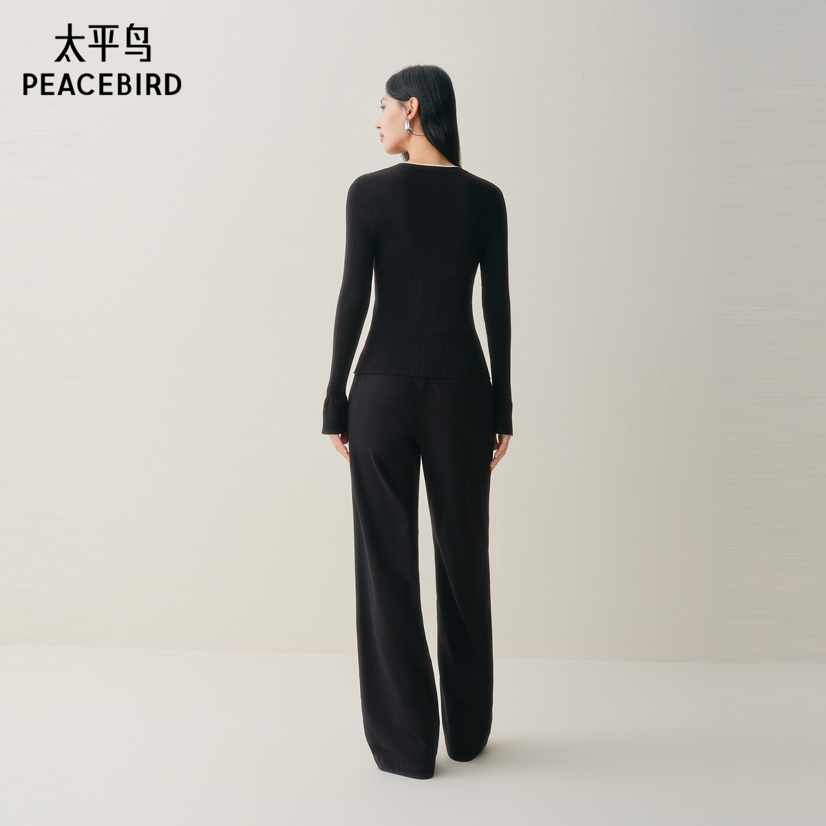 太平鸟 V领打底针织衫25冬季新款女士撞色修身套头气质毛衫上衣